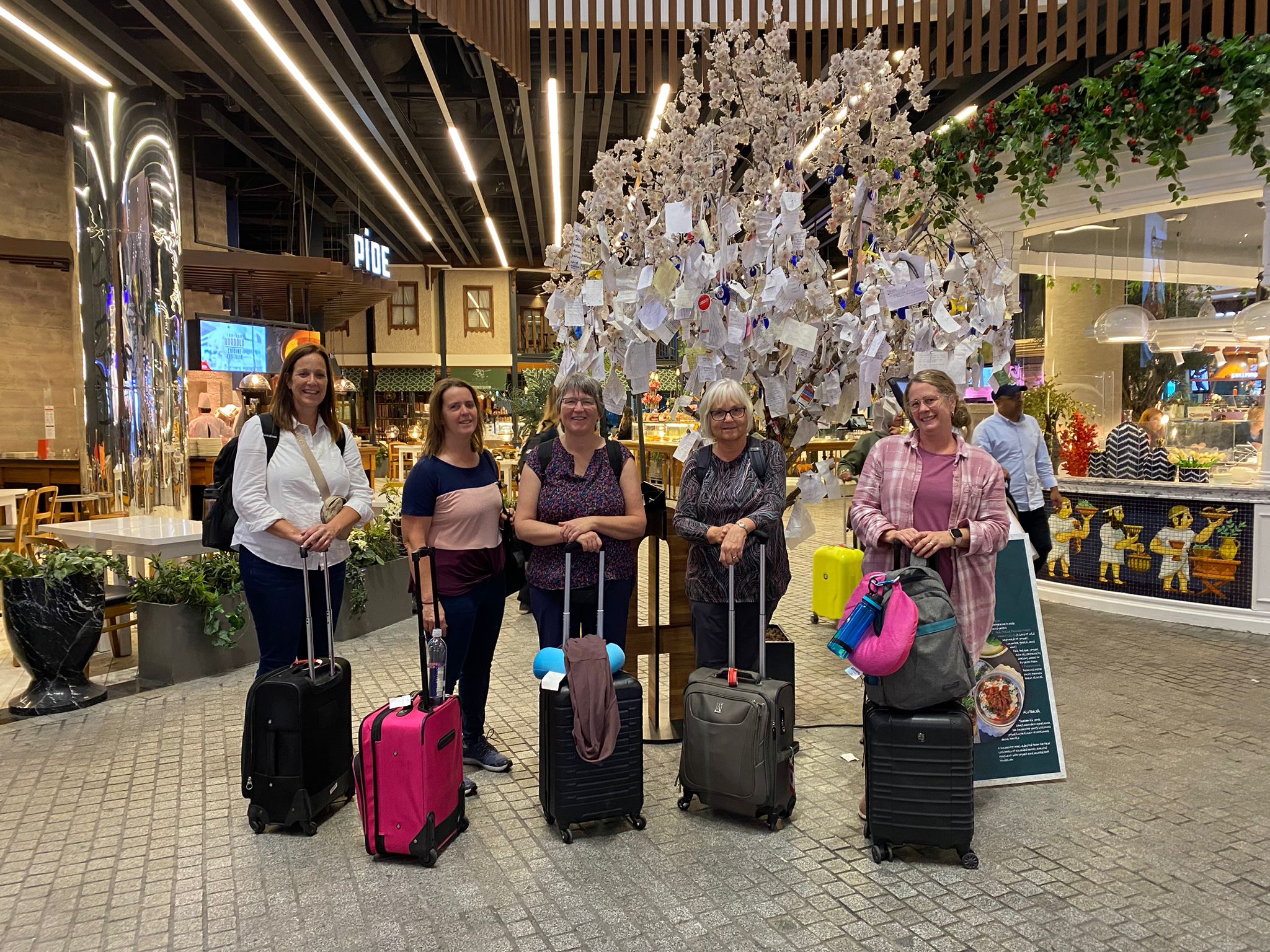 Thanks to our drivers Fran and Bert we arrived at the Seattle airport with plenty of time to spare! Although flying out of Seattle added time we did get to enjoy our last fall leaves for the year. En route we've had good conversation, some pretty good plane food, and a few naps... we won't rate the quality of the naps! We spent time wandering around the beautiful Istanbul airport and, of course, had to take a few group photos! It's been enjoyable having time to bond as a group.