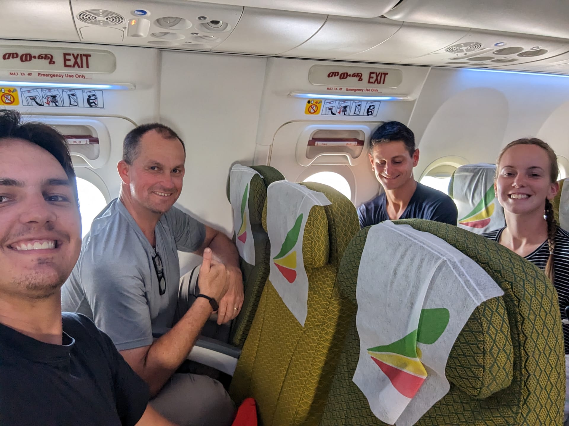 Anyways, as we fly somewhere over Tanzania we're doing yet another card game as we managed to take over a whole section of seats while they refueled the plane in the extra leg room area. Steve was the only honorable member who actually paid for his seat.