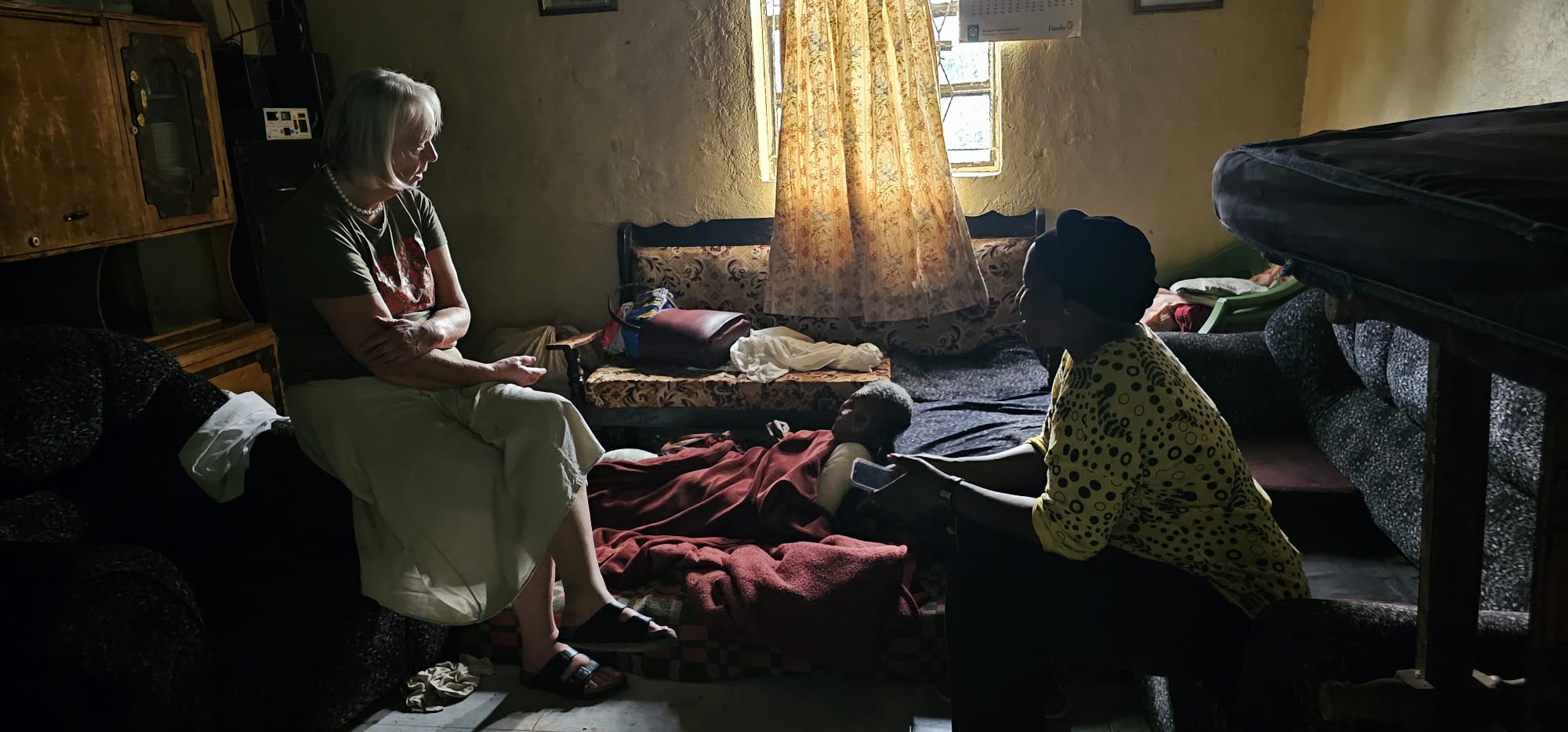 After landing in Kisumu we traveled to our guest house in Kakamega. We had our first 7 widow visits yesterday after a much-needed nap and a delicious meal prepared by Maggie and Julia, our sweet helpers. The visits went well, and the ladies were happy and grateful to see us. We shared Bible verses, received prayer requests, sang songs and gifted them with flour, sugar, and oil to make chapatis, and also tea, soap & a washcloth.