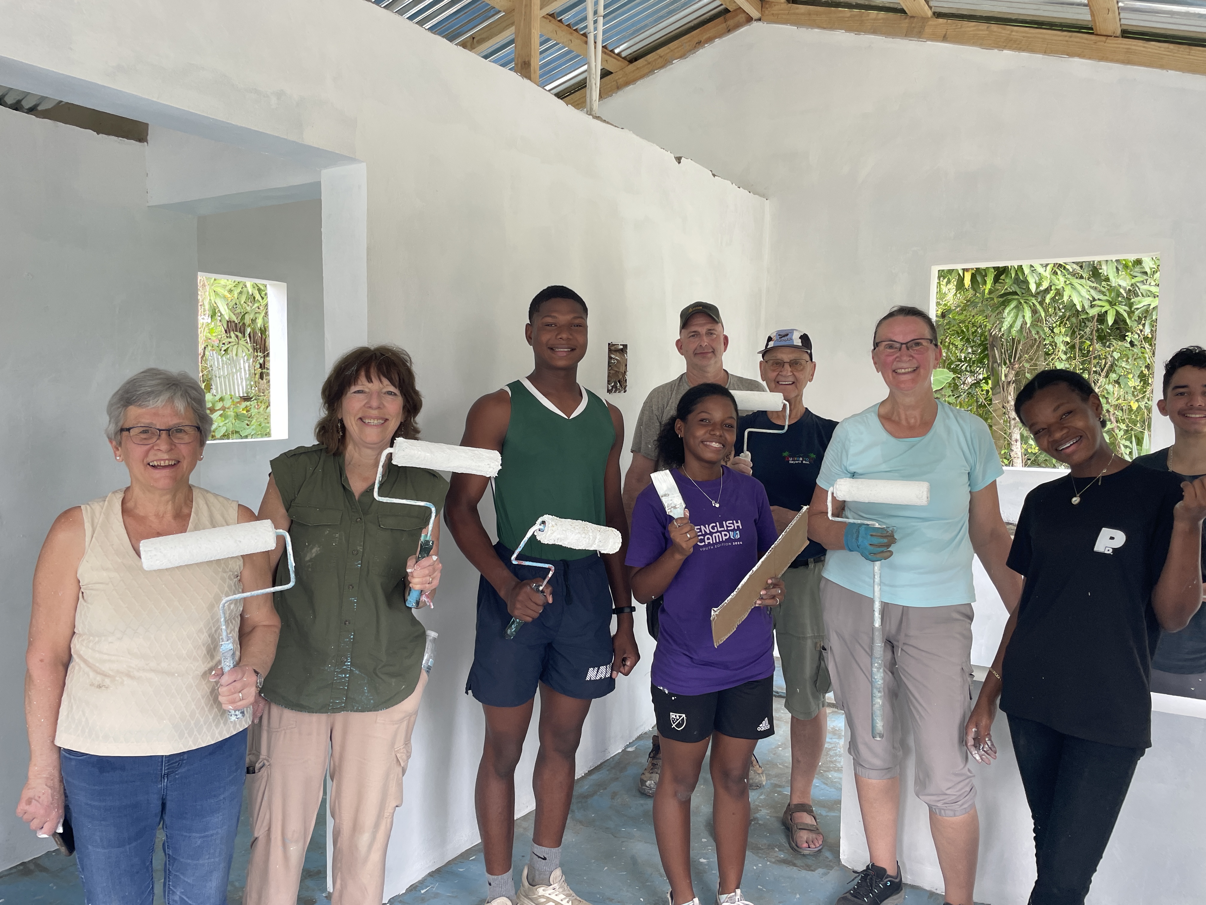 It is easy for volunteers to skip steps, or to do a half hearted job at times because of a lack of skills. I did not see that in this particular case today. The workers were taking the extra time to scrape the walls off smooth and then even sweeping the dust from walls to allow for a good secure bond between the concrete and the primer. We did this as a extended community of believers in Christ, our team members, locals from the church and you who donated from Canada.