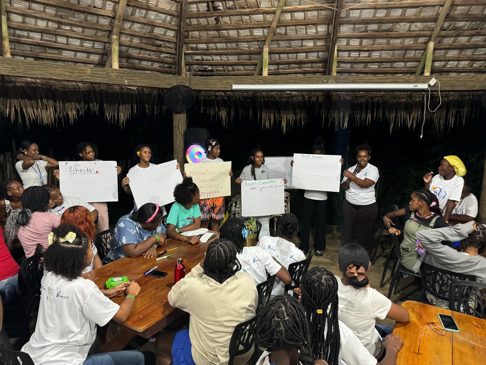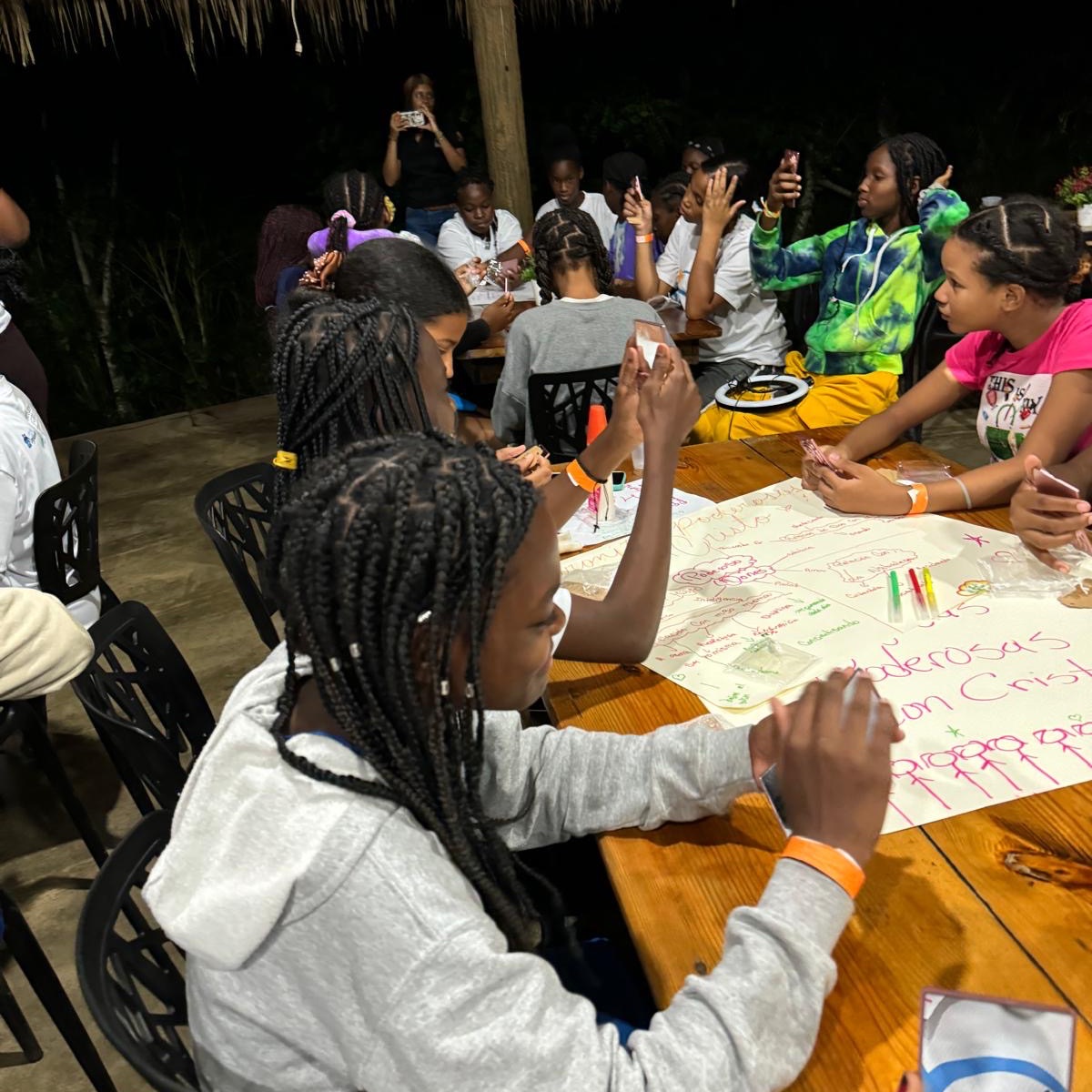 And after some free time, we started with group activities, where 5 teams prepared to start a small dynamic, starting by choosing a name for each group, very creative, like (The Super Blues, The Powerful Little Oranges with Christ, Adventurous Friends...).
