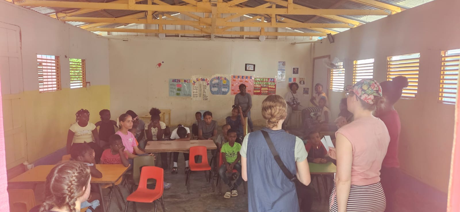 Bright eyed and bushy tailed we all hopped out of bed (even Anita)! We enjoyed a delicious cup of coffee while nibbling on a traditional western breakfast. We hopped into the van and bounced down the dirt road to New Jerusalem. We hopped out of the van and were welcomed by bouncing children. The men eagerly jumped back into the construction projects. The girls played with the hopping children until english classes began and then all worked together to get as much concrete and roofing done to beat the rain. We munched on our delicious lunch made by the local ladies, our noses twitched while trying the fried bananas. Together with the school communities we said our prayers, thankyous and goodbyes. It was a good to see how much progress we during our time in new Jerusalem. We hopped in our large van again and bounced to the colonial zone to jump through the markets. After we finished purchasing our souvenirs and gifts we hopped off to the ocean side to enjoy some fresh pizza and icecream!