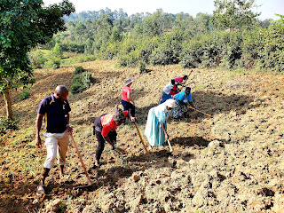 We had left the house early and had made our way to Maggie’s where a group of our ladies have a co-op garden. Co-op gardens were started to help Voice of Hope women who either do not have a shamba of their own, or only a very small one. We had arrived to give our women a hand with the second plowing and to give us a little bit of an experience of what it’s like to eke out your living...by hand...with primitive tools. The first plowing had been done earlier.