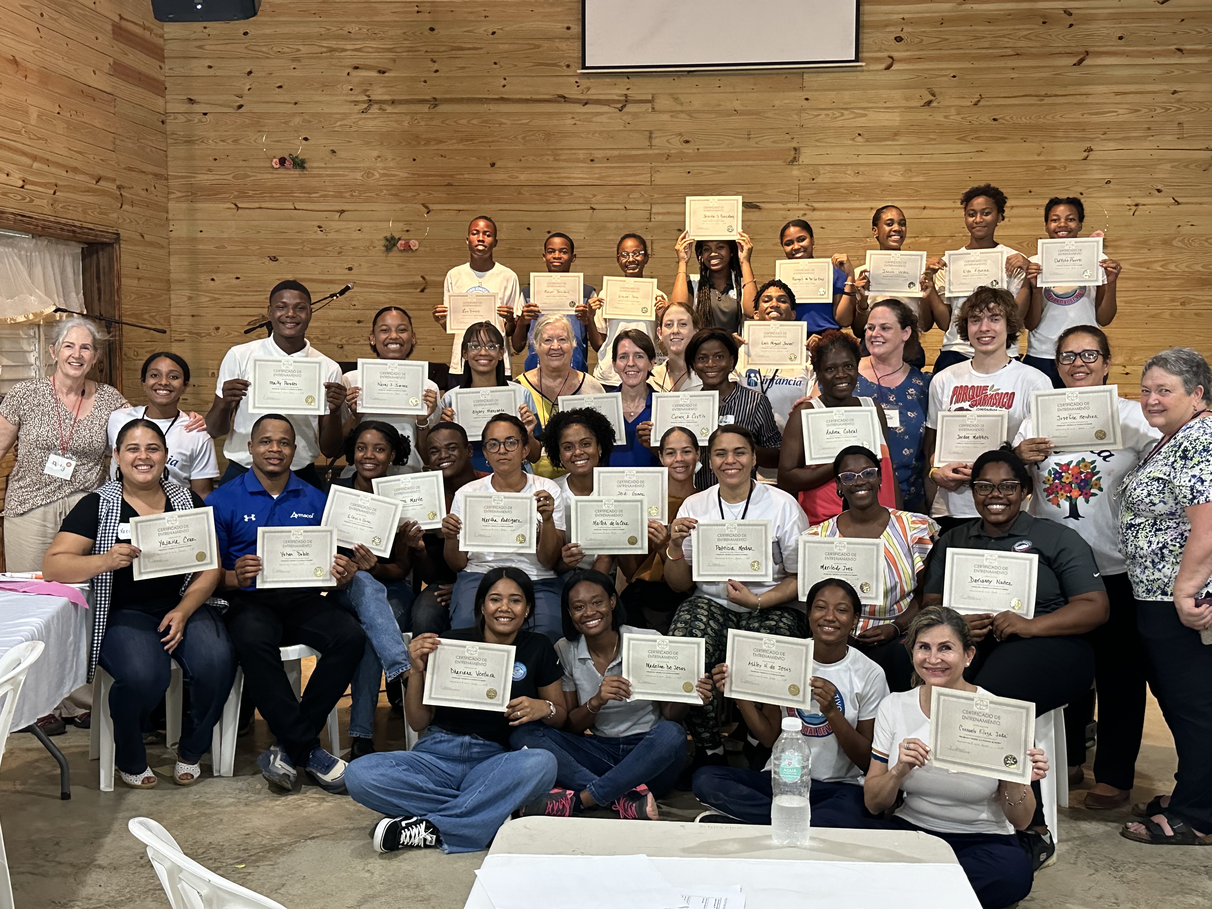The presentations were lively back to the large group with claps and cheers of support as they came forward with some amazingly realistic solutions. They were all impressive but the one group we were blown away with was the one for teenpregnancy/early marriage which is a significant problem in the DR. They felt that a lack of love and affection from their families was one of the main causes. These were their campaigns they will initiate…