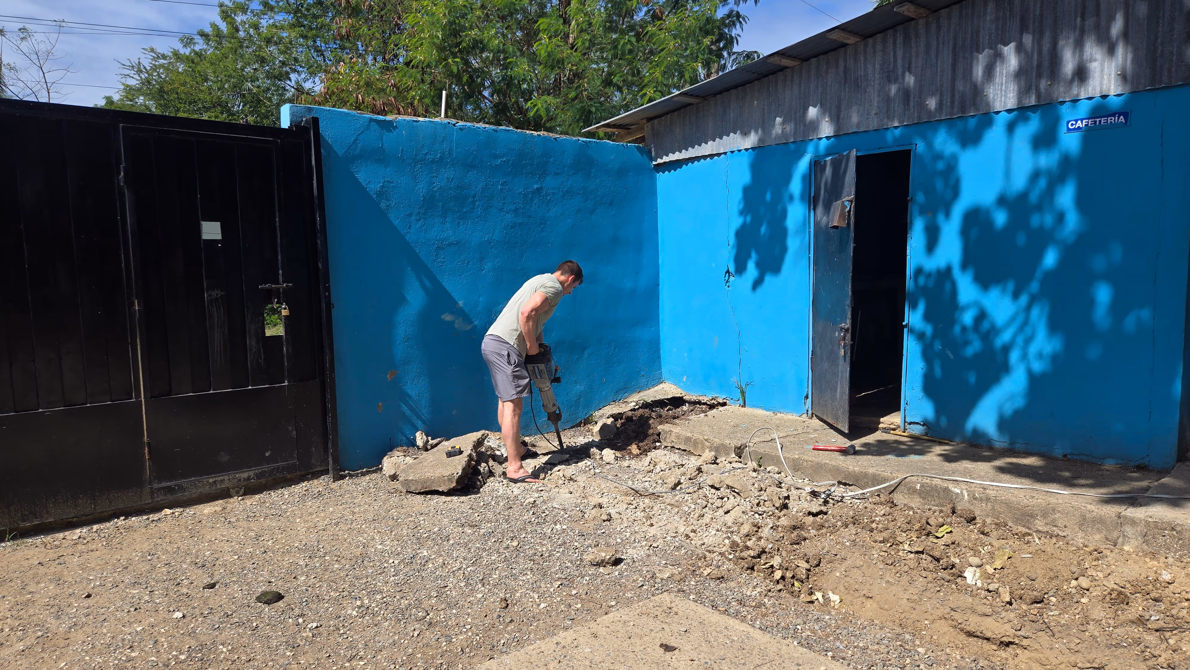 Afterwards, the guys started demolishing the old cement pad used for sports so that a new one