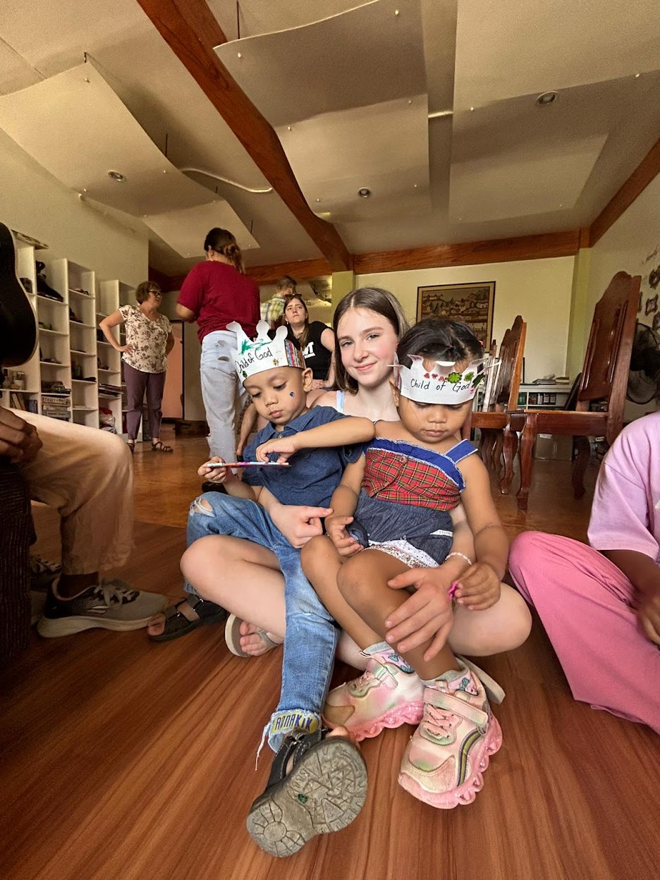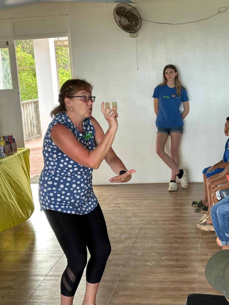 Our first day of VBS in the afternoon was attended by about 50 children and featured the usual activities—singing, Bible stories, games and a craft, but just a little more than the usual chaos than we might experience at home. While the older schoolchildren tend to towards English fluency, it is more challenging to communicate with the younger ones. One of the local girls, Shiena, has helped with this by acting as interpreter, especially during storytime.
