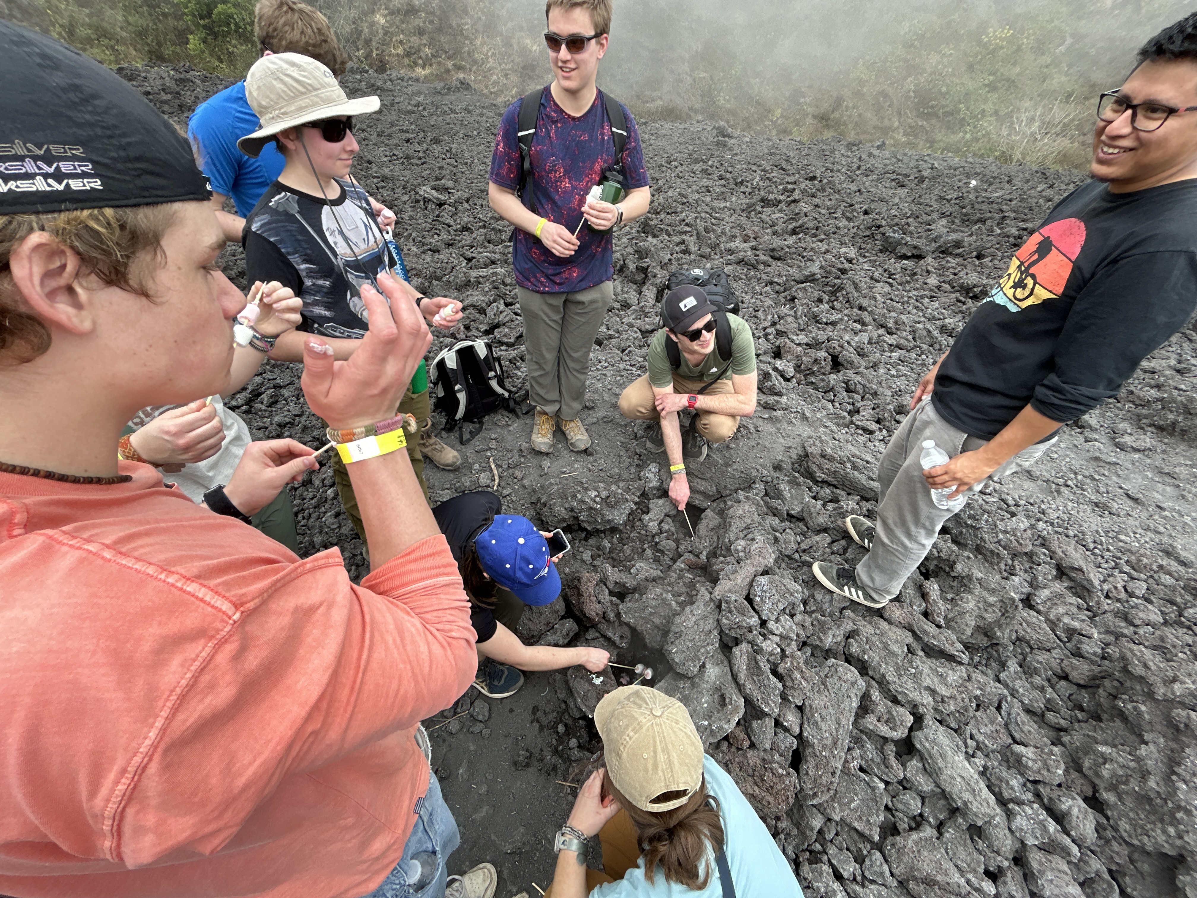 This morning our group had a sleep in and woke up for breakfast at 8 after two crazy travel days. After that we headed off to a volcano for a hike. We didn't go to the very top of the volcano (it was Volcan de Pacaya), but the path was still quite steep and there were lots of people horse-riding up the trail. Before heading back down, our guide showed us something super cool - how to roast marshmallows from the heat in between the rocks (yes, it's still an active volcano). Despite the hot sun, it was a beautiful day for a hike and we had a great time.