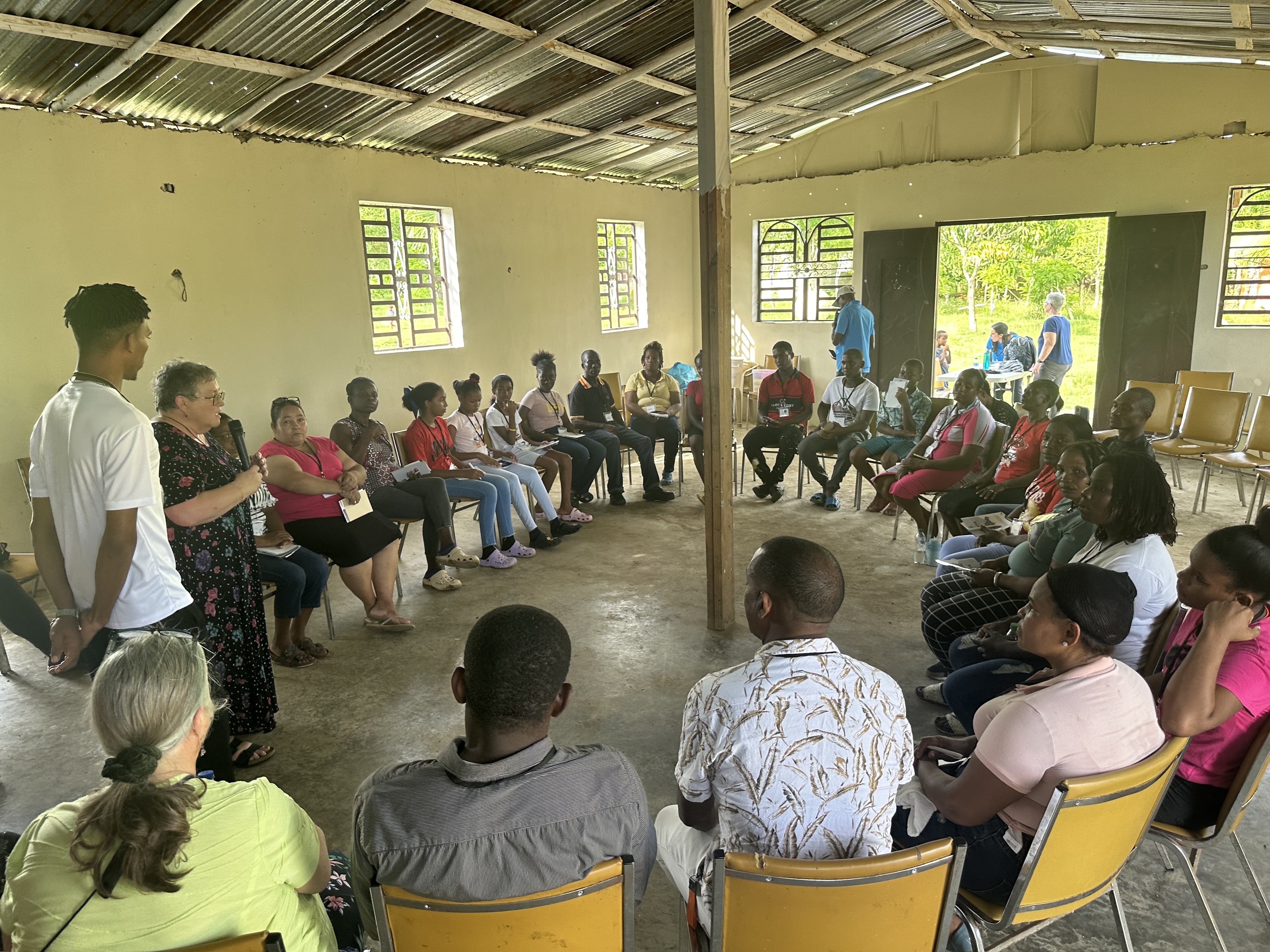 After lunch, we were off to our first leadership session in the village of New Jerusalem. Some of the teenagers from the local school put up a poster inviting everyone in the community to come and it didn’t mention adults only! So between the laughter of the children and the noise from the bar, there was a lot of distractions. But we feel we got our vision across and the first step in identifying the concerns in the community. We look forward to what tomorrow brings for the remaining full day of our leadership.