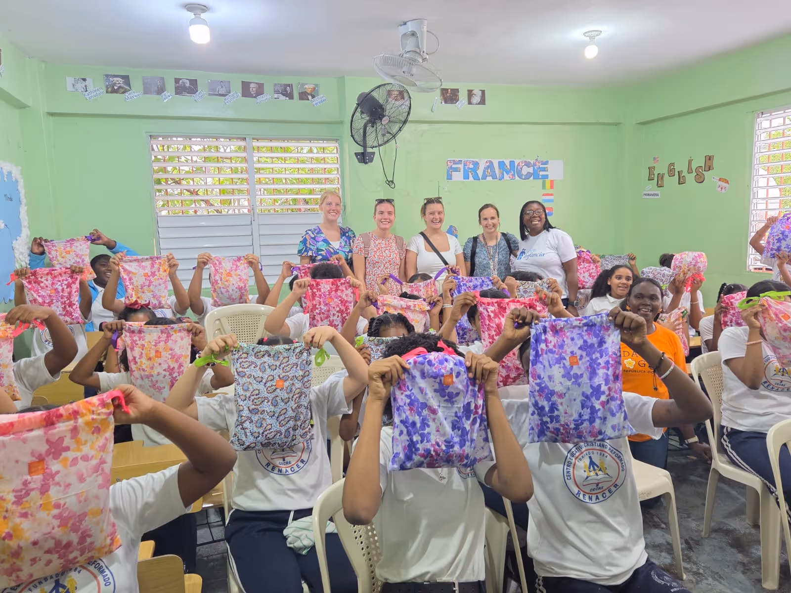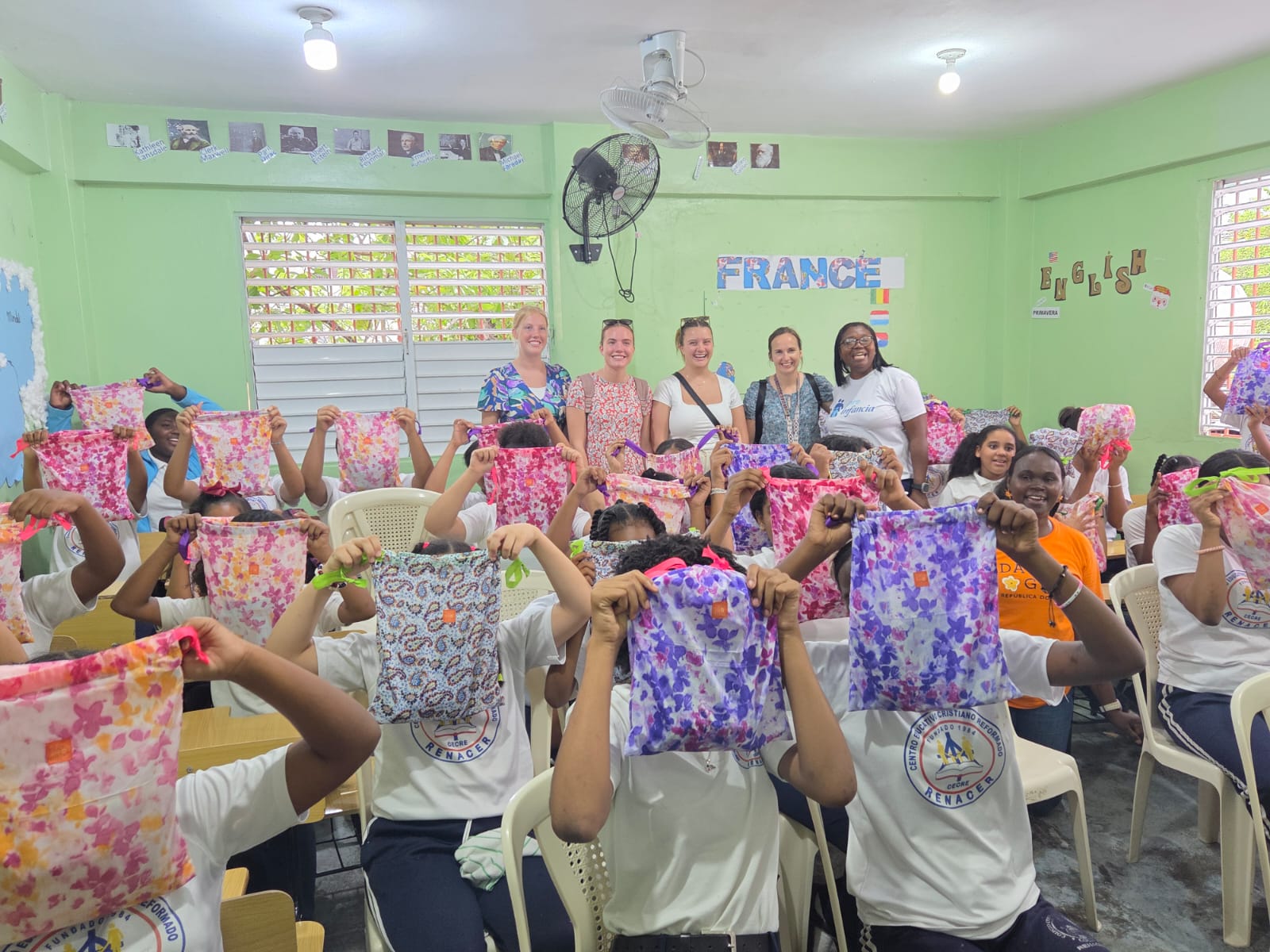 The girls went to a school in Los Alcarrizos, where they handed out the Days for Girls kits made yesterday. The girls were very excited about their new kits and loved all the colours!