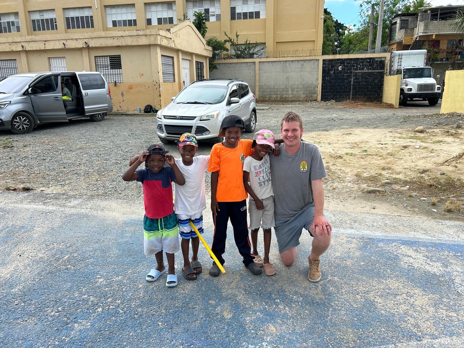The team then met back at the compound, the boys looking quite blue (the colour of the bleachers). No wonder they ran out of paint! We closed the afternoon with a small game of baseball and some delicious spaghetti and plantain.