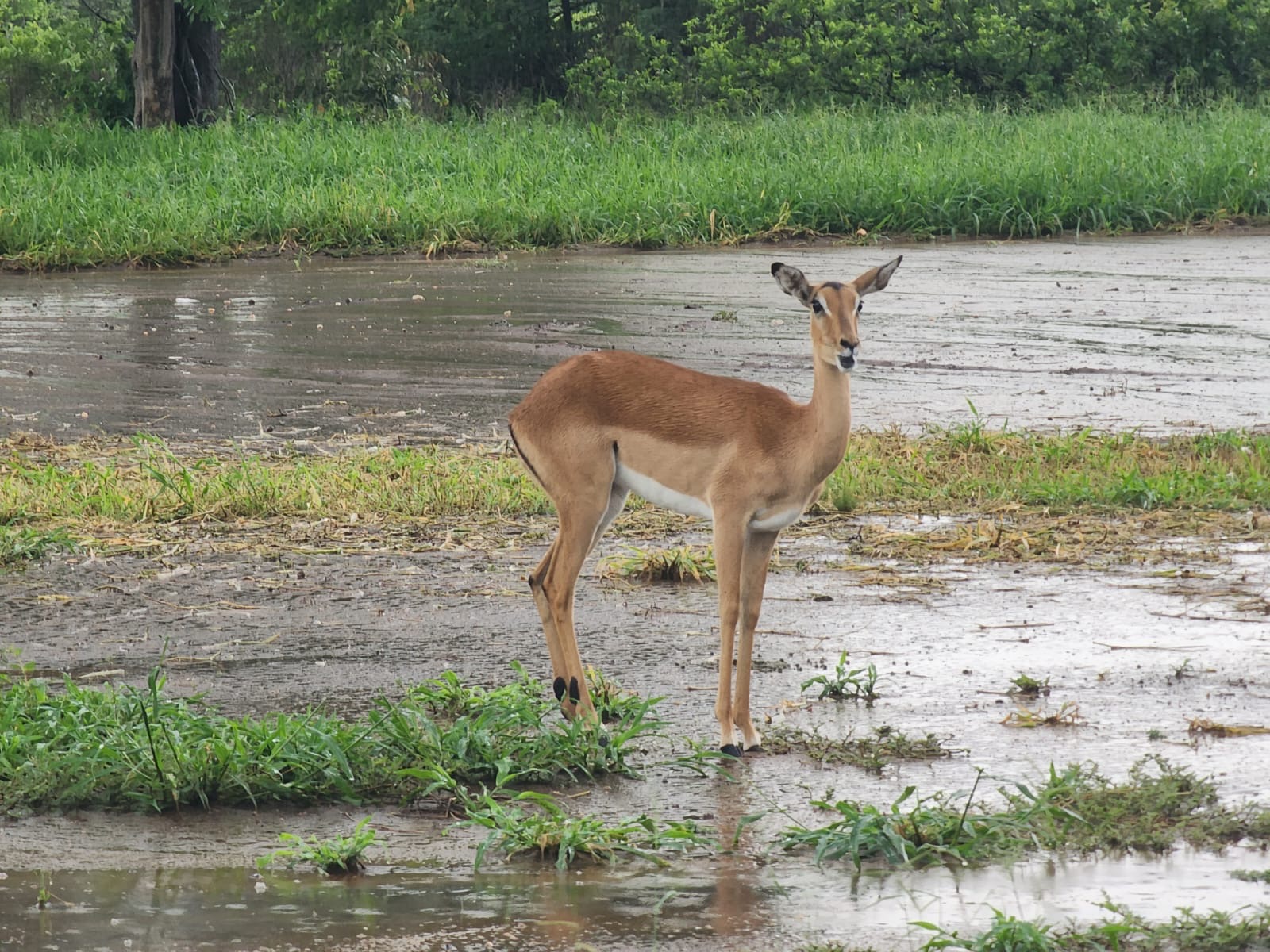 We all met in the main building after freshening up in our rooms, then climbed into the safari truck. It was a little cramped, as the trucks were not designed to contain the 12 humans that were aboard. The rain did not help matters, some of us were mildly damp and the rest were soaked to the core. We left on safari at close to 4:30pm, and had our eyes peeled until our return. Baboons, Nyala, and Hippopotamusses were among the animals that were seen, along with a plethora of antelope.