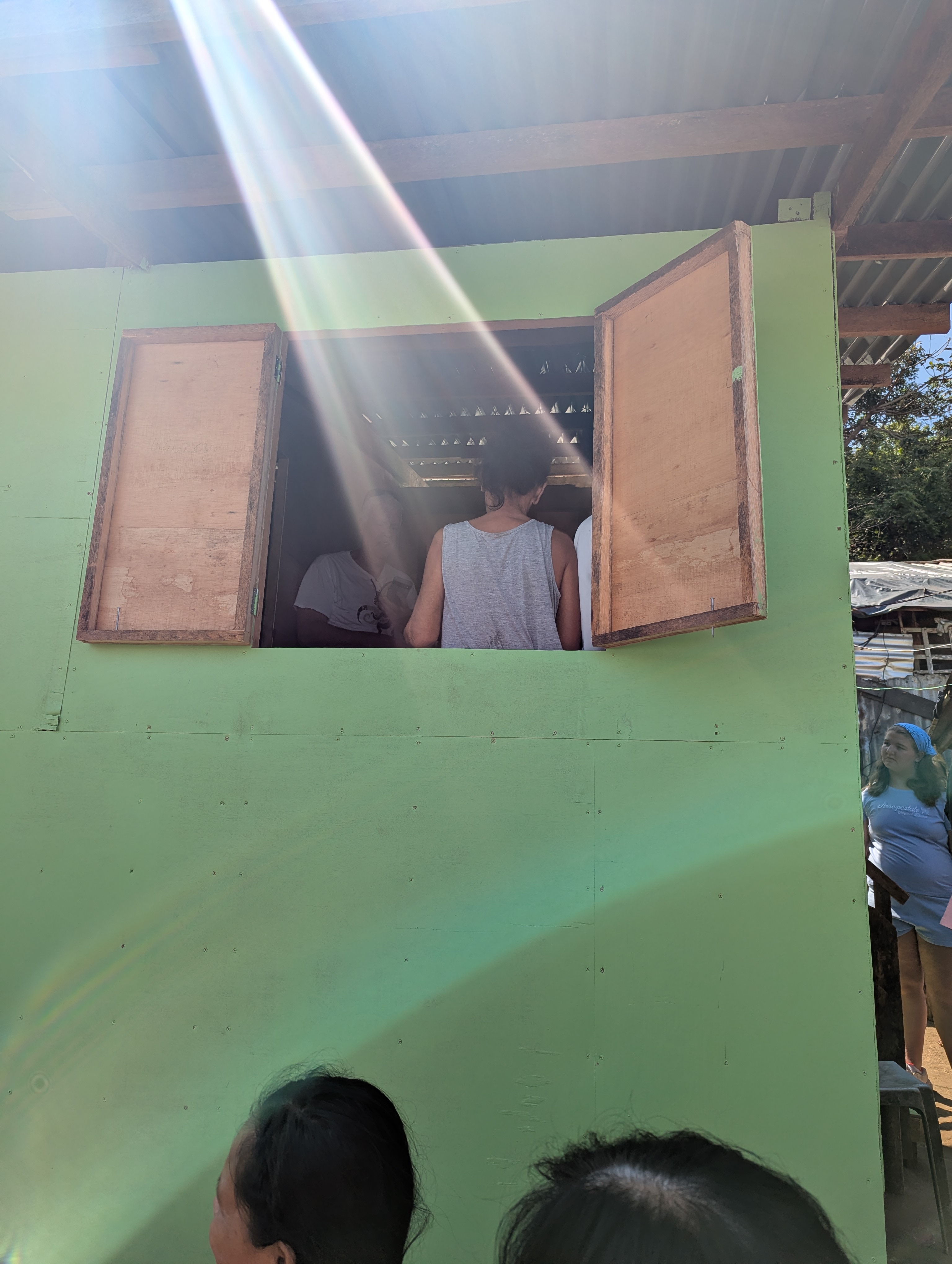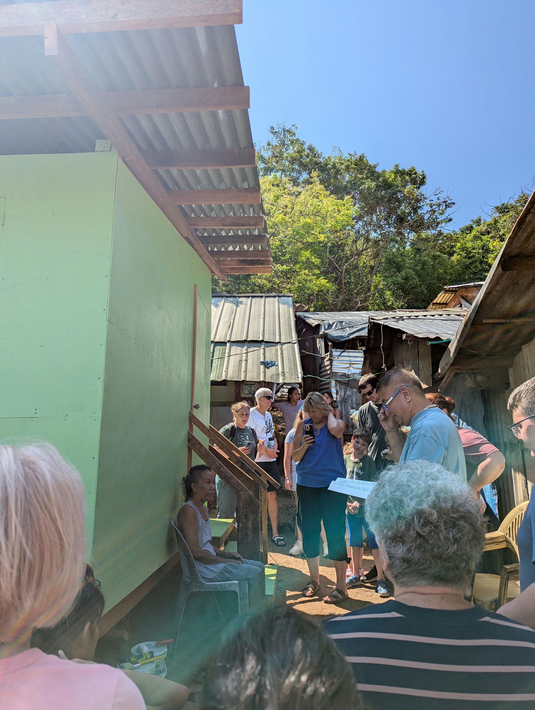 Today was our last day. We headed out to dedicate the houses and hand over the keys. Site two was an especially emotional experience, as the woman who received the house was so overwhelming grateful. Site one, with it's remnant concrete wall of a previously unfinished house is an interesting juxtaposition of new and old. One of the girls who will live there had already staked out her room. Joven said a few words about why our team built these houses, prayed and gave each family a Bible.