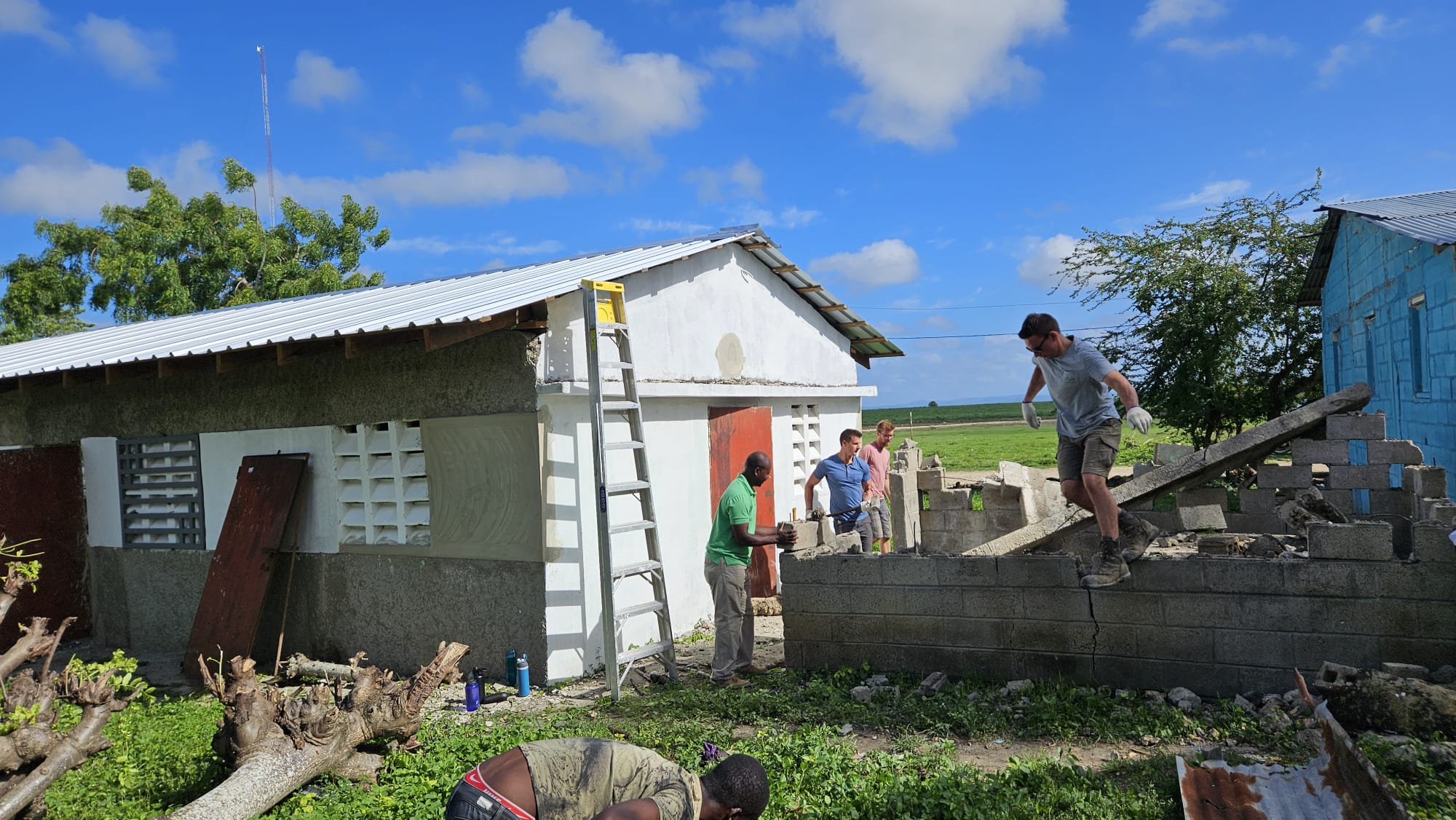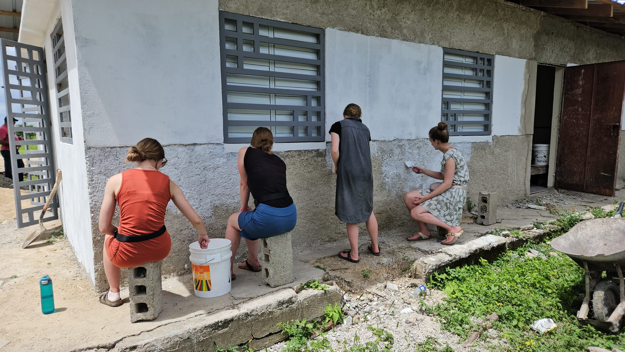 Our morning began with the amazing sounds of a rooster and hen! Since the sleeping space wasn't ready, the ladies enjoyed a sleep over in the pastors house. After a delicious breakfast, the men began demolishing an old cook house. Meanwhile, the ladies headed to the school for a final VBS and some singing. We concluded our morning with lunch. Following this, the men started to dig a foundation, which included pick axing tree roots, and unloaded a truck of bricks. The ladies got to paint the community centre and entertained village children with bead bracelets. Around 3:30, we packed up, said good bye to Pastor David and his wife Anna, and headed to our final destination, San Pedro de Macorís. Before dinner, we took a stroll to the ocean nearby. We had a traditional dinner of, rice, chicken, and beans. We ended our day with a team debrief and hit the sack early so we could get up early for the sunrise. Adiós!