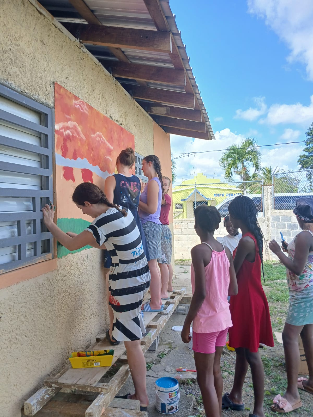 Today started even before the sun had peaked over the horizon. All 15 of us (plus our faithful translators Elias and Willie) enjoyed the peaceful sound of waves crashing against the shore as the sun slowly began to shine brightly over the city of San Pedro. After a quick breakfast at the guest house, we finished packing up our belongings and headed back to the Bates. When we arrived we were met with excited children who were eager to hold our hands and touch our hair. We were informed that one of the teachers had not shown up to teach so we had to go gather up the children ourselves. While some of the girls read a bible story and did a craft with the kids, a few of the other girls worked their magic in painting a stunning mural on the school wall. The message that they portrayed was “hope”, which is very important in the sad conditions of this community. Before leaving the community, we had a delicious lunch of rice and chicken, a Dominican classic. We sent off heartfelt Adios’ to the kids and then drove off through endless fields of sugar cane. Finally we emerged onto the highway which took us to a grocery store where we bought all the groceries we would need. With much anticipation, we happily drove to our oceanside AirBnB. Upon arriving, we noticed it was a very unrealistic representation of the Dominican it was. Without seeing the core of the country, it is impossible to know what it truly is like to live there. We all immediately changed into our swimsuits and hit the pool without a splash because “no no no” to jumping. Before the sun set we played an uncoordinated game of beach volleyball in which we all can agree Willie was the real winner. Then Anita and BJ cooked us up a delicious meal of Spaghetti for all of us. Then we all relaxed and enjoyed the sound of waves crashing upon the sandy shore and we look forward to our tour of the beautiful Catalina Island tomorrrow!