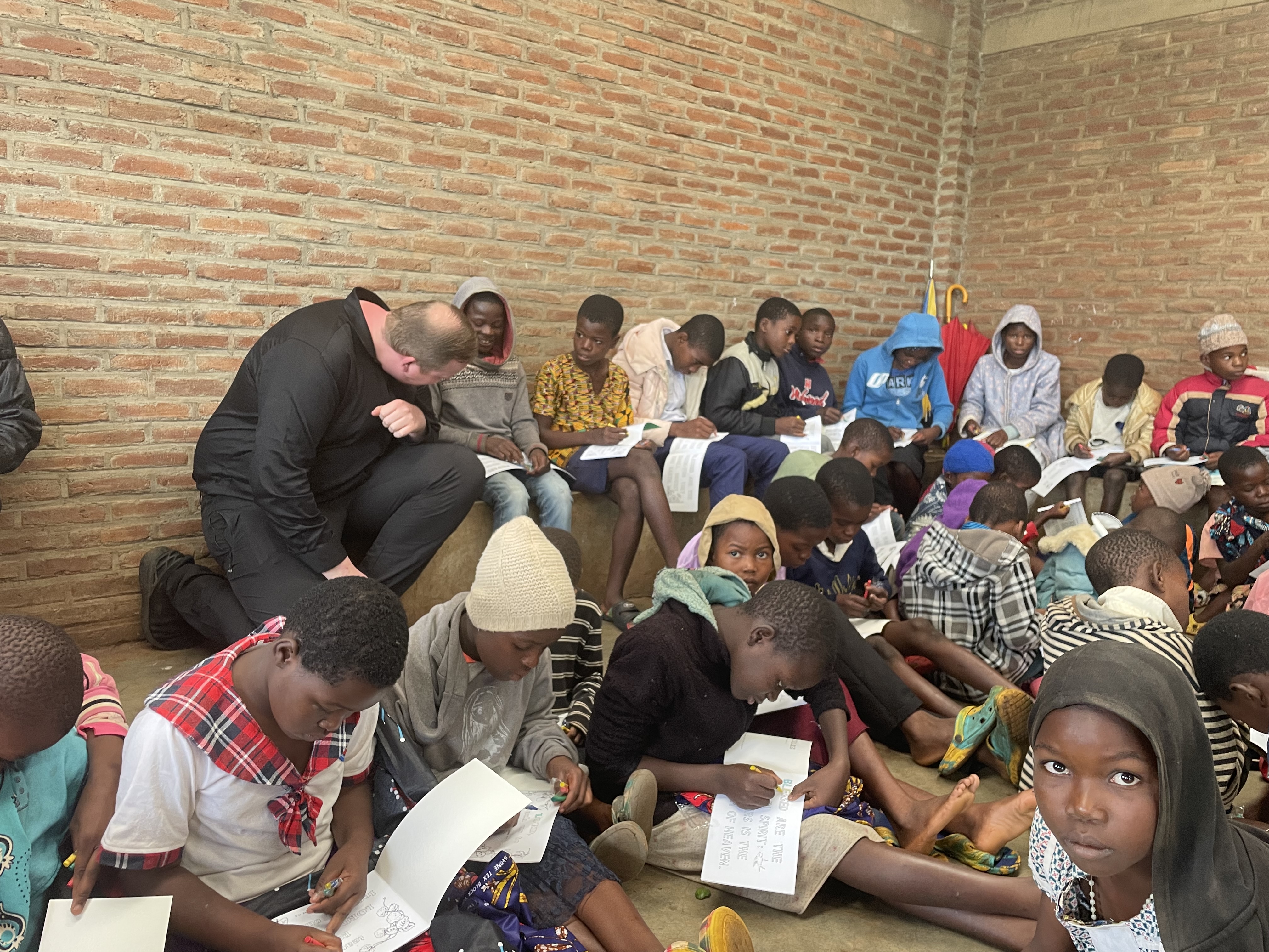 The church was a small building with wooden benches, and people went in and out freely as the service went on. There was so many little kids sitting still and listening intently. The sound of rain hammering on the roof continued through the service. After church, we brought Bible verse colouring books and crayons for the kids in Sunday school. We handed them out and helped some of them colour. They were so excited to get brand new books and visitors. We also gave each of them a lollipop which they loved! While they were doing the activity, one of us noticed a kid looking longingly from outside the building. We invited her inside, but she wouldn’t accept the invite. So, we brought her a book and crayons and coloured with her outside. She wasn’t allowed to participate with the other kids, either because she got kicked out of the program for some reason, or because she didn’t have a sponsor. After this, we made our way back to our place.