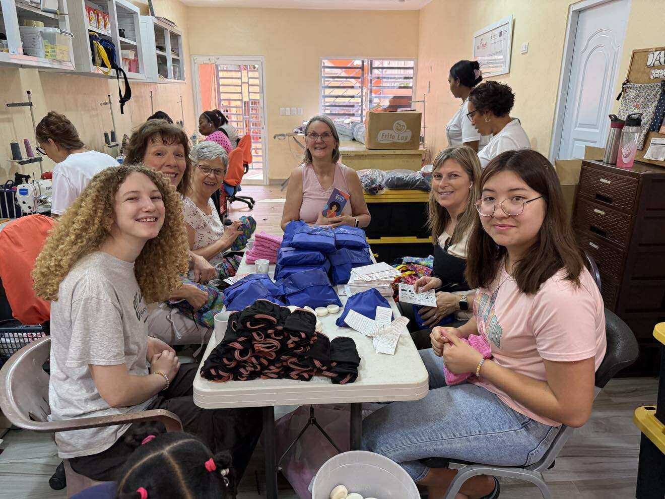 We were quickly put to work assembling kits. I think we assembled some 500-700 kits ready for distribution. This enterprise sews and distributes with a goal of 4,000 kits per month. The ladies are paid for their sewing so is an income for their mostly Haitian, undocumented families.