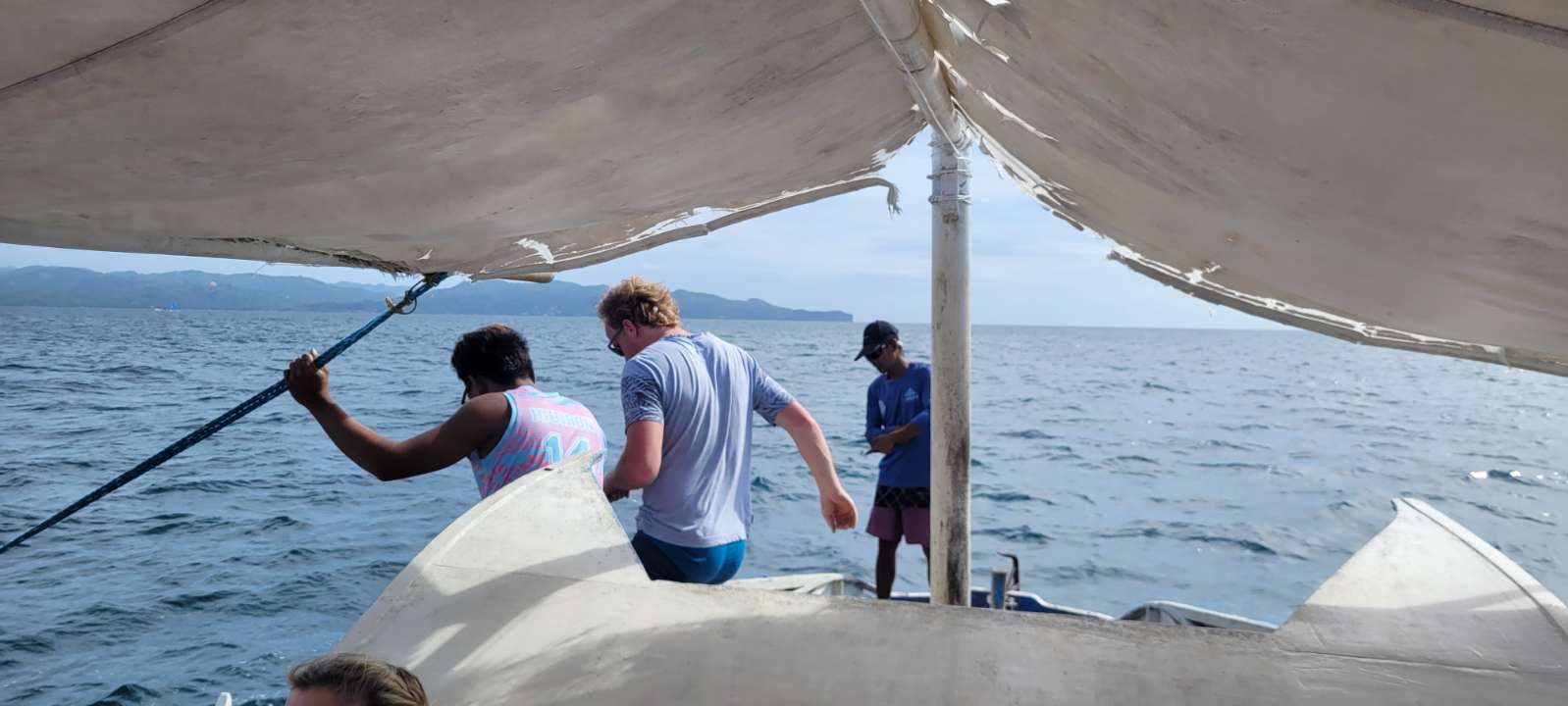 Later in the day we got to go fishing with some of the fishermen on their boat. We were taught that here in Boracay, fishing roods werent the strategy. It's plastic bottles that they wrap the string around. We caught a few, all with their own beautiful, cool and vibrant colors. It wasn’t just about catching fish though; it was about learning and experiencing a way of life of these people.