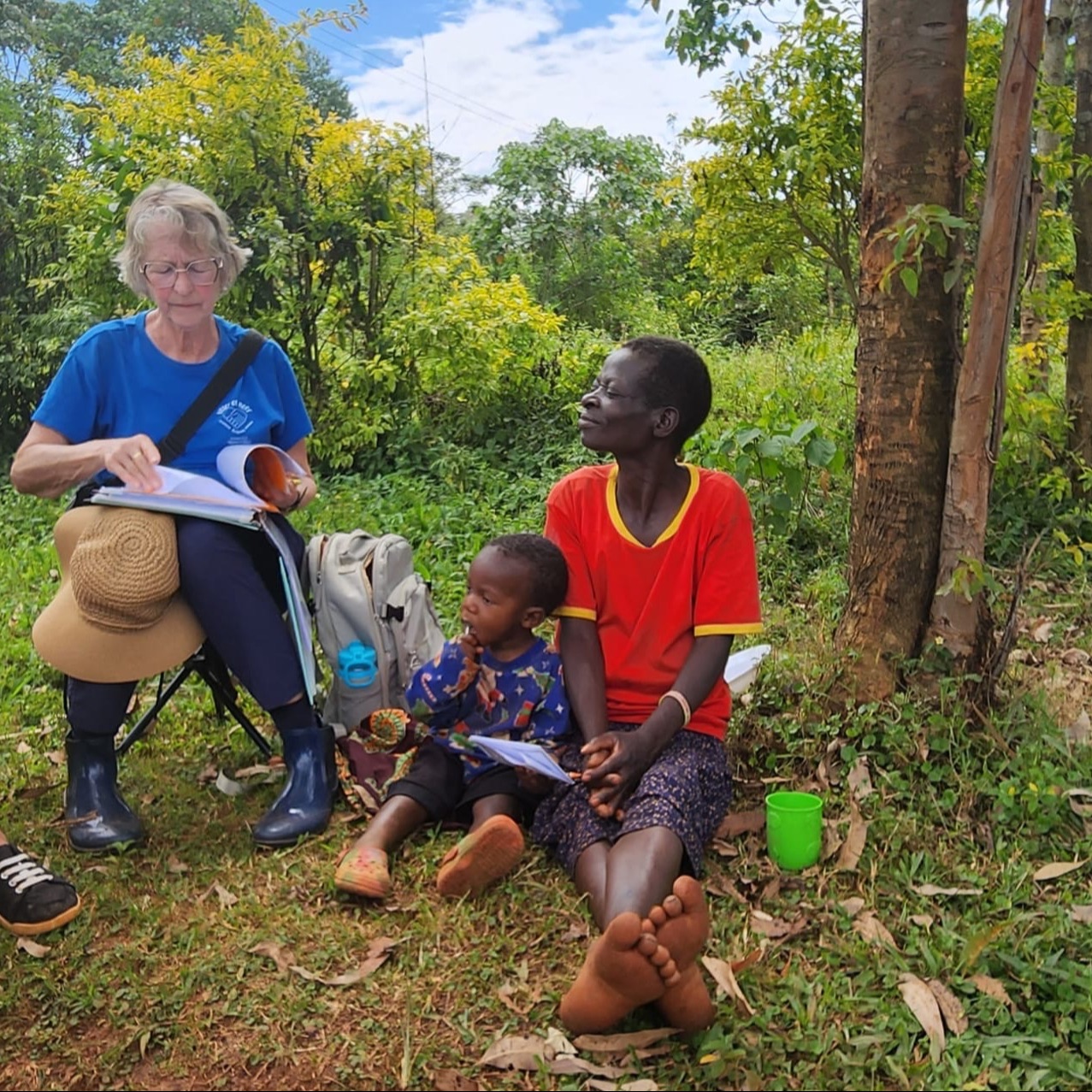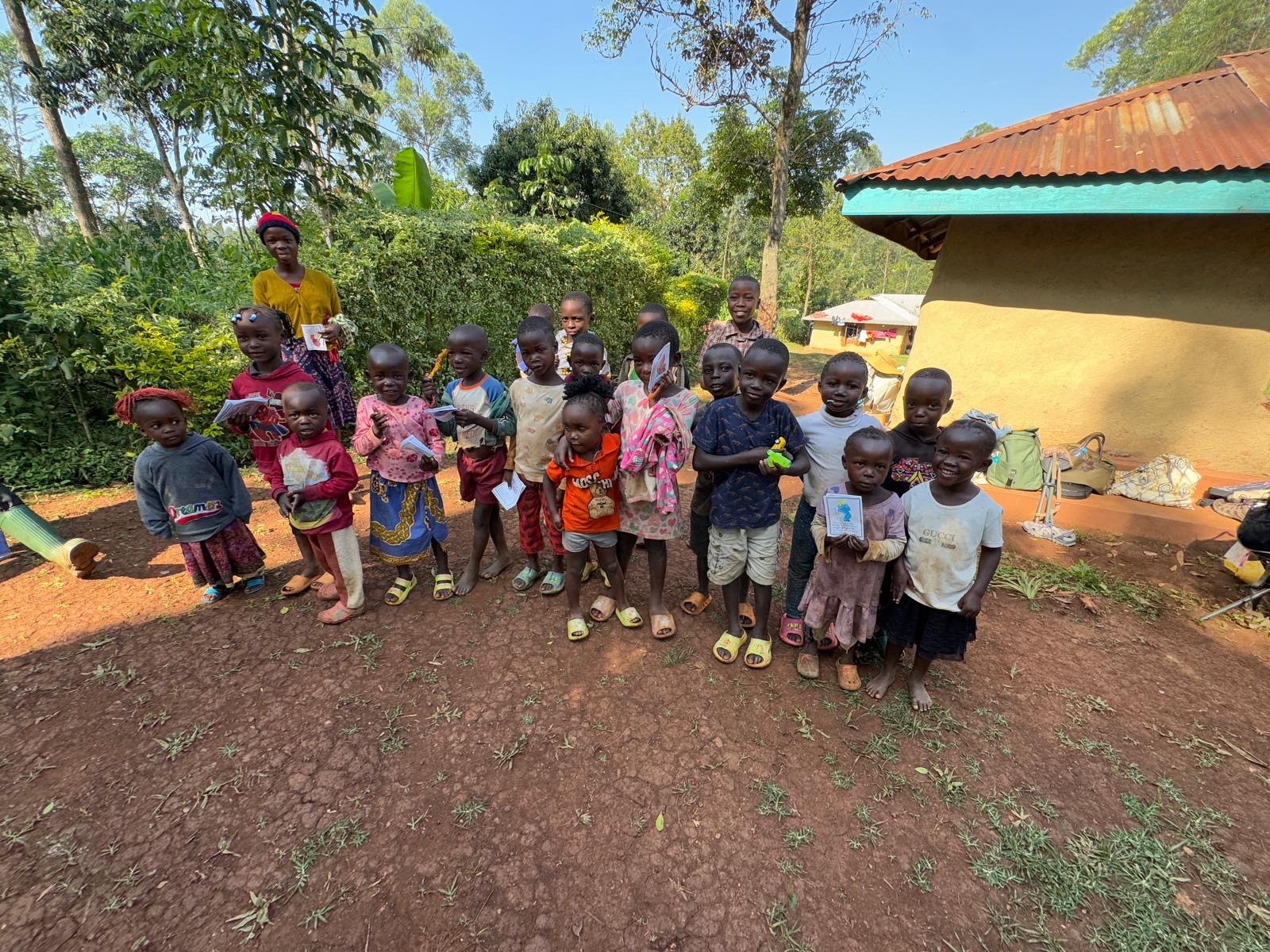 While we visit with the widows, many children follow and come for a Bible story, colouring picture, and of course a "sweetie"