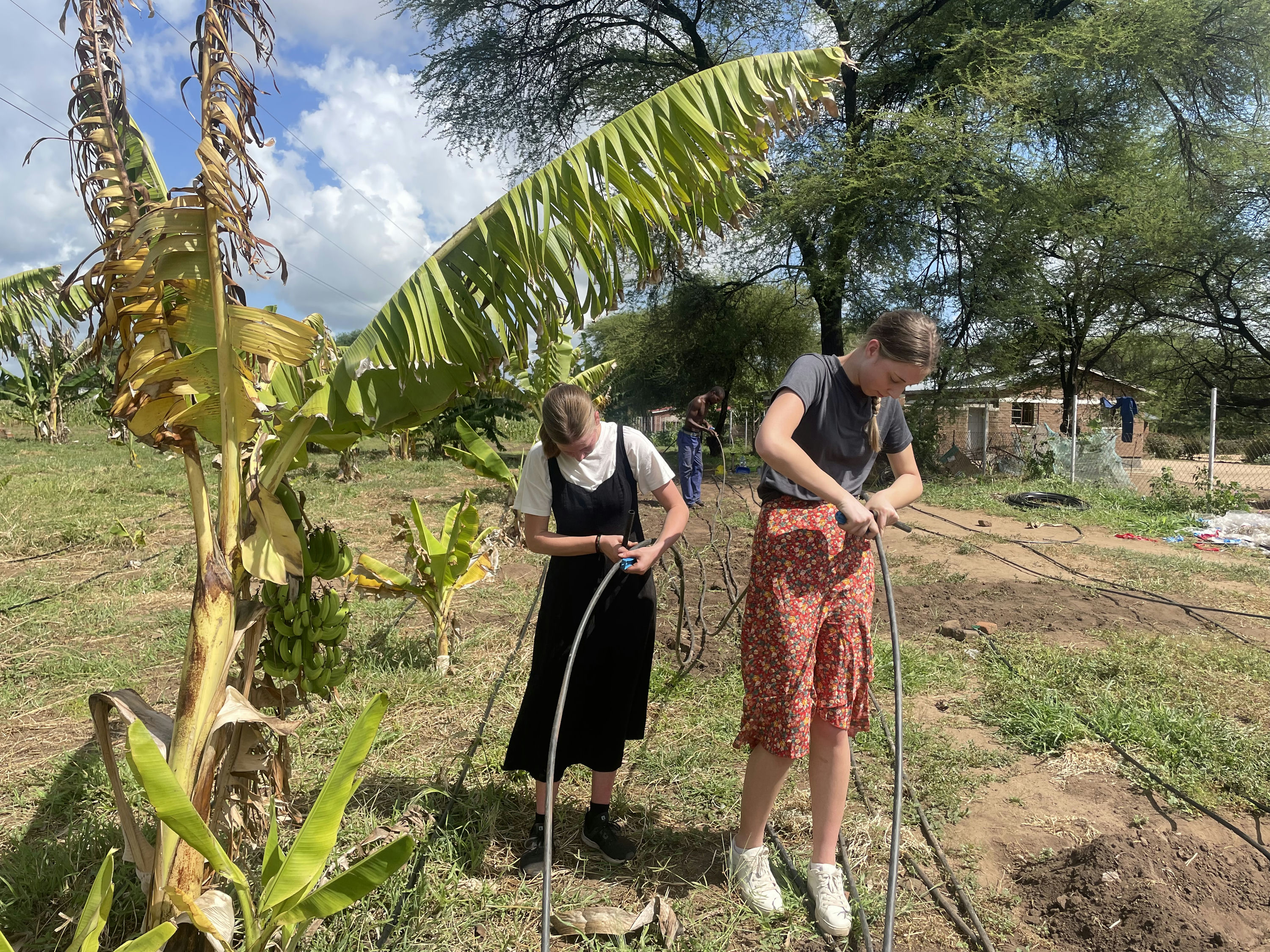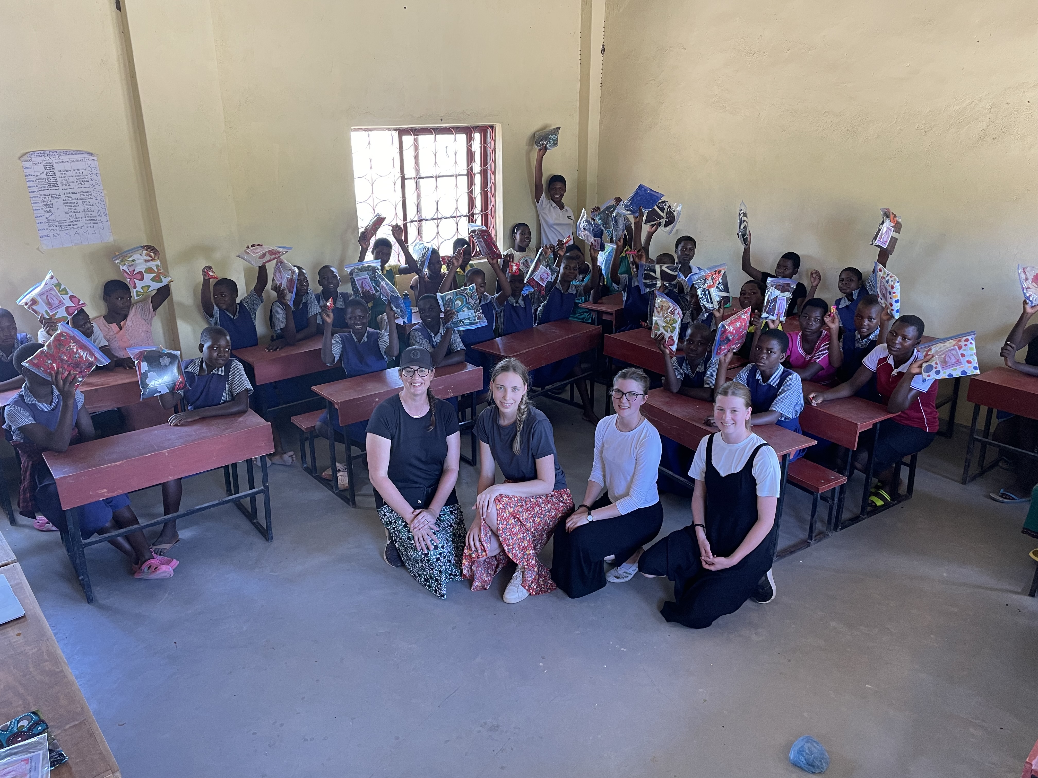 After that, the girls and Ruben headed to the Nyamithuthu child center to do a presentation on feminine hygiene. There was about fifty girls from standard 6 and up with a teacher translating. Most of these girls have never been educated on menstrual health, because it's a huge taboo topic here so these girls miss weeks of education because theyre not able to keep themselves clean for hours at school. The highlight of the presentation was Ruben demonstrating how to use the reusable pads and women's underwear that Days for girls organization put together. We could tell the girls were very grateful for this, as they all left the classroom with smiles on their faces. We got back to Chigumikure in time for the lunch opening ceremony so we met with the guys again and sang Amazing Grace to the kids, and they sang a psalm in Chichewa for us. Some of us had a typical Malawian lunch of nsima, cabbage, and soy stuff. Mmmm! Others (those who were not quite so daring) had a granola bar instead. Since the guys were finished all the work in the field, all of us visited each classroom from nursery to standard 8 to give baskets of supplies to the teachers and coloring books with crayons, lollipops, stickers, and bracelets to the kids. The teachers and children were so grateful for everything. While we were visiting, Antonie, our busdriver washed the entire bus by hand. He is a good sport about it even though we walk onto the bus with filthy shoes everyday! That guy is truly the best driver around, doing everything we ask and some things we don't ask including taking our group pictures to playing with the kids at the center. We headed out around 330 to take a group picture at the child care sign and at a 1000 plus year old baobab tree that we pass every morning. The highlight of every bus ride is the speaker system, so Ruben sang us Wilhelmus, and Sweet Caroline today to try it out. We must be a sight to the Malawians we pass by! As we were resting at the lodge, we felt some spitting raindrops, so hopefully we can experience an African rainshower! The menu for dinner tonight is: rice, chicken, goat, and cabbage. We all chowed down and socialized for a few hours and then headed to bed to get good sleep before our last day in Nsanje