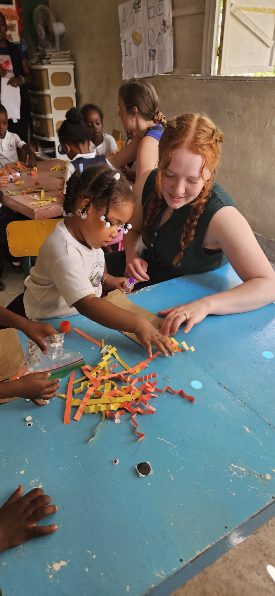 We started off the day with delicious pancakes and then packed up to head to New Jerusalem. We took a 10 minute drive down a bumpy dirt road to the village where the preschool kid greeted us enthusiastically. There we did some Vacation Bible study where we focused on Daniel in the lions den. Once again we had three groups where we did a puppet craft and the kids walked around saying roar for the rest. Outside they played relay races and then we taught them the bible story. The kids were exited to teach us Spanish songs!
