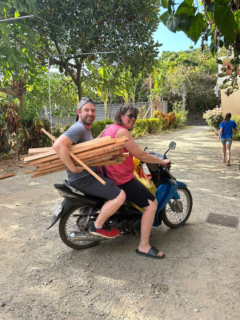 Anita and Dustin bringing some lumber to the construction site. All in a day's work.