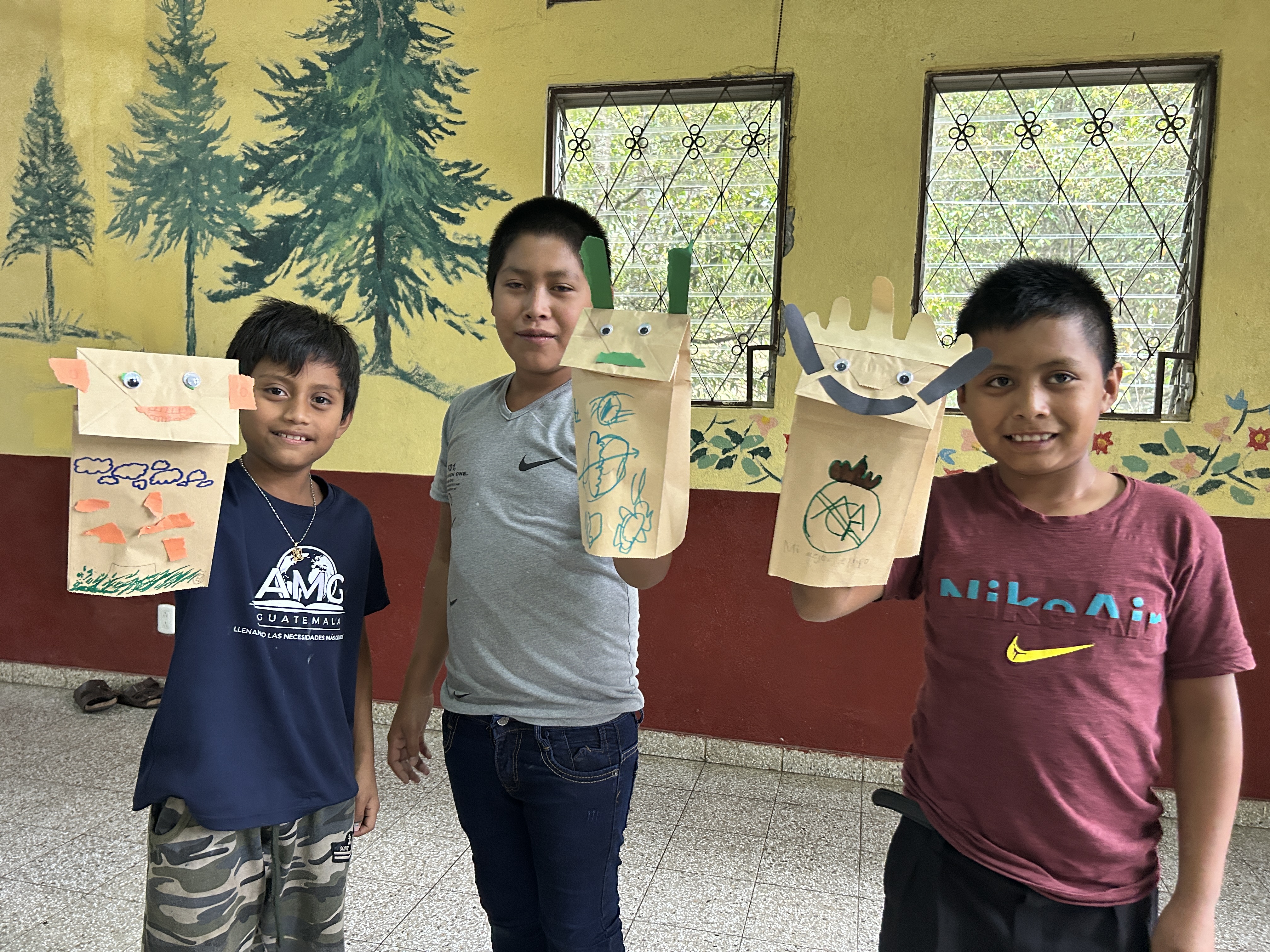Following lunch, we ran some crafts in the multipurpose room - paper airplane contest and paper bag puppets followed by an indoor soccer tournament (it was raining again outside so we had to pivot).