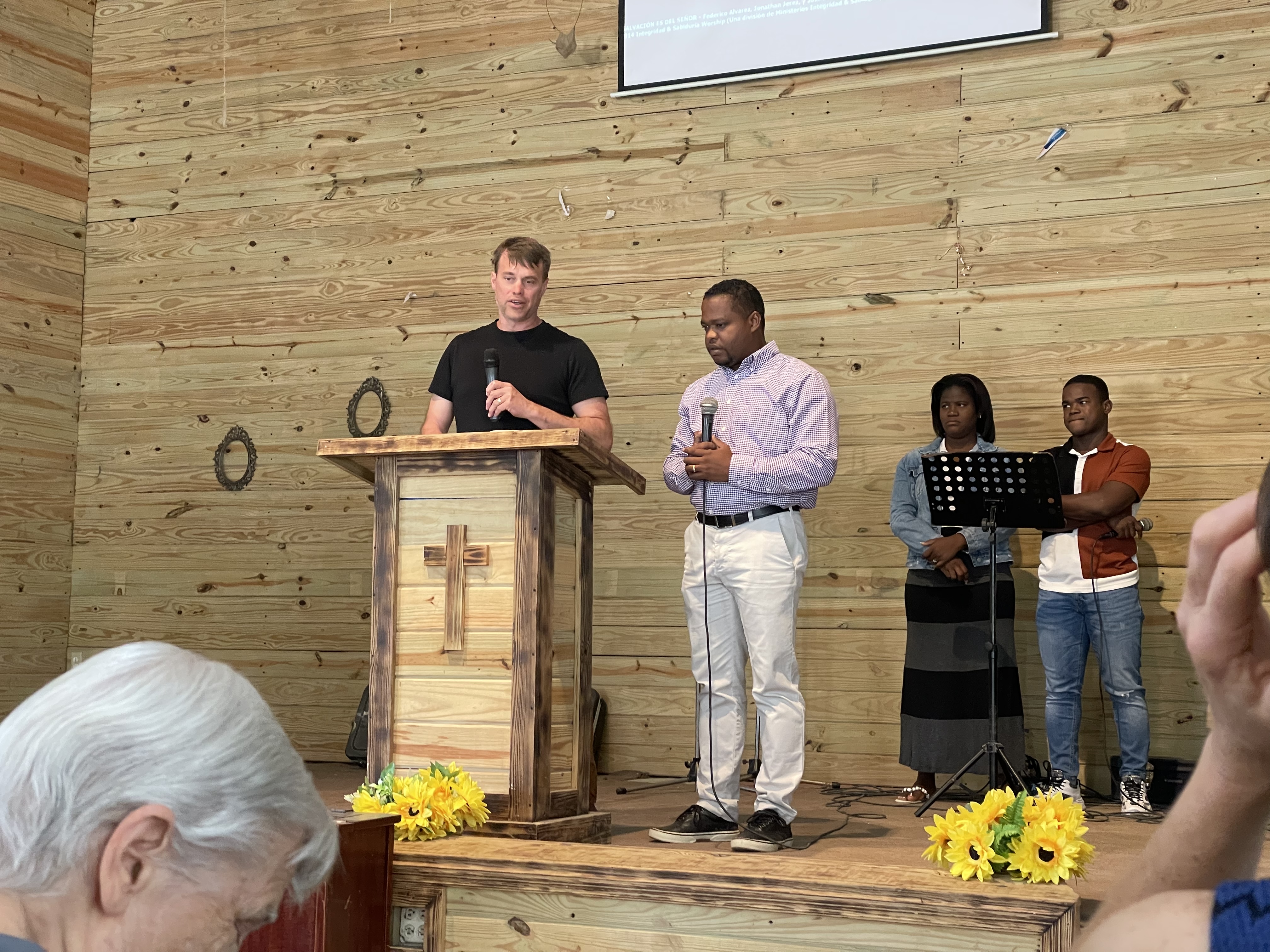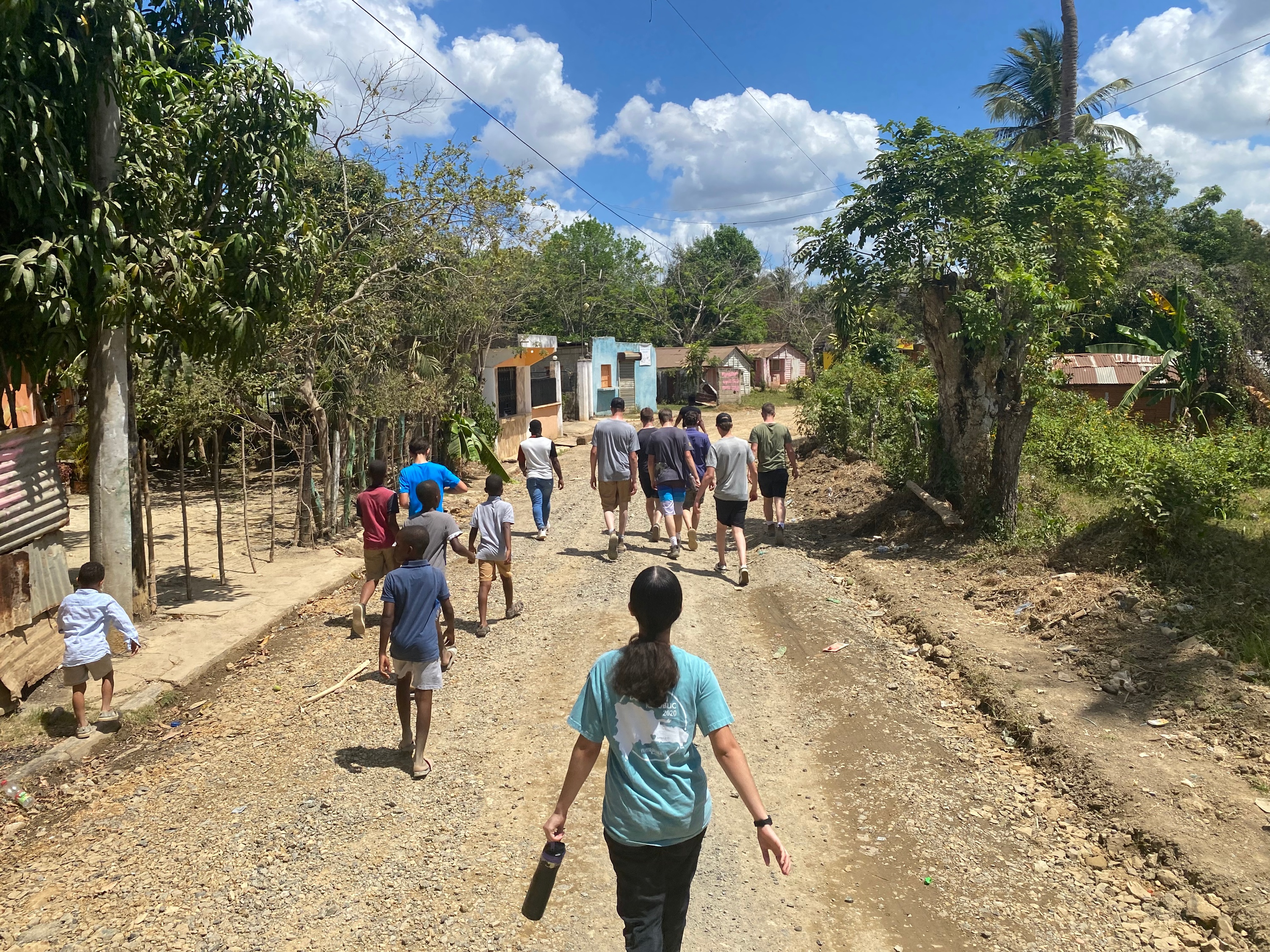 Sunday morning, we woke up to a cool wind blowing through the open shutters of our floor. A welcomed contrast from the stifling heat we fell asleep to. Heading down for an 8 am breakfast, the first rays of heat shone down. In the kitchen we were met with oatmeal cake and fresh local fruit. Once breakfast was complete pastor Richard closed, and we scattered to get ready for 9:10 church. Once seated, several songs were sung by three singers accompanied by a piano and a guitar. After this, Pastor Paul preached from Revelations in English, and was translated sentence by sentence in to Spanish for the local people. Once the service was over, we found that the heat had returned in full force. Walking back to the school compound, we headed back to our bunks, and changed. Around 11, we left and walked around the town, stopped briefly to watch Team Juan Thomas play softball. Moving on, we walked down a dusty single lane road, to where the site of Pastor Pierre’s new house. After some inspection, we continued down a lane that wound in a wide circle back to the town, and the kitchen, where aqua and food awaited us in much needed shade.