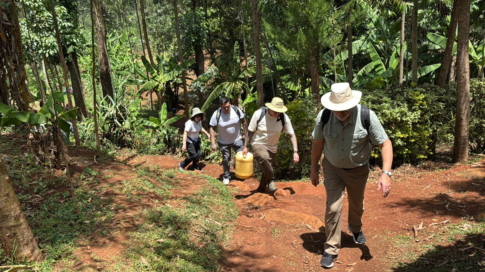 To commemorate the visit, we planted a few trees, and then walked down to the water source to bring water back.