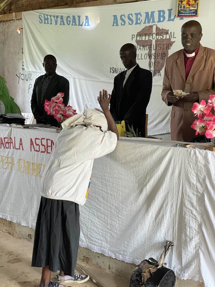 This is Anne writing and I am loving my first visit to Kenya! Today we received a very warm welcome at a local church. It was fun seeing their church traditions. It seemed like whoever wanted was welcome to come up and give a testimony and then someone would start a song and everyone would join in clapping and singing accompanied by the church drum line. This went on for about a half hour or more. One very precious testimony was from a very poor, tiny, widow lady who told how she received 3,000 shillings ($30) from her son and she wanted to give it all as an offering because she wanted to fulfill a pledge she had made to the Lord.