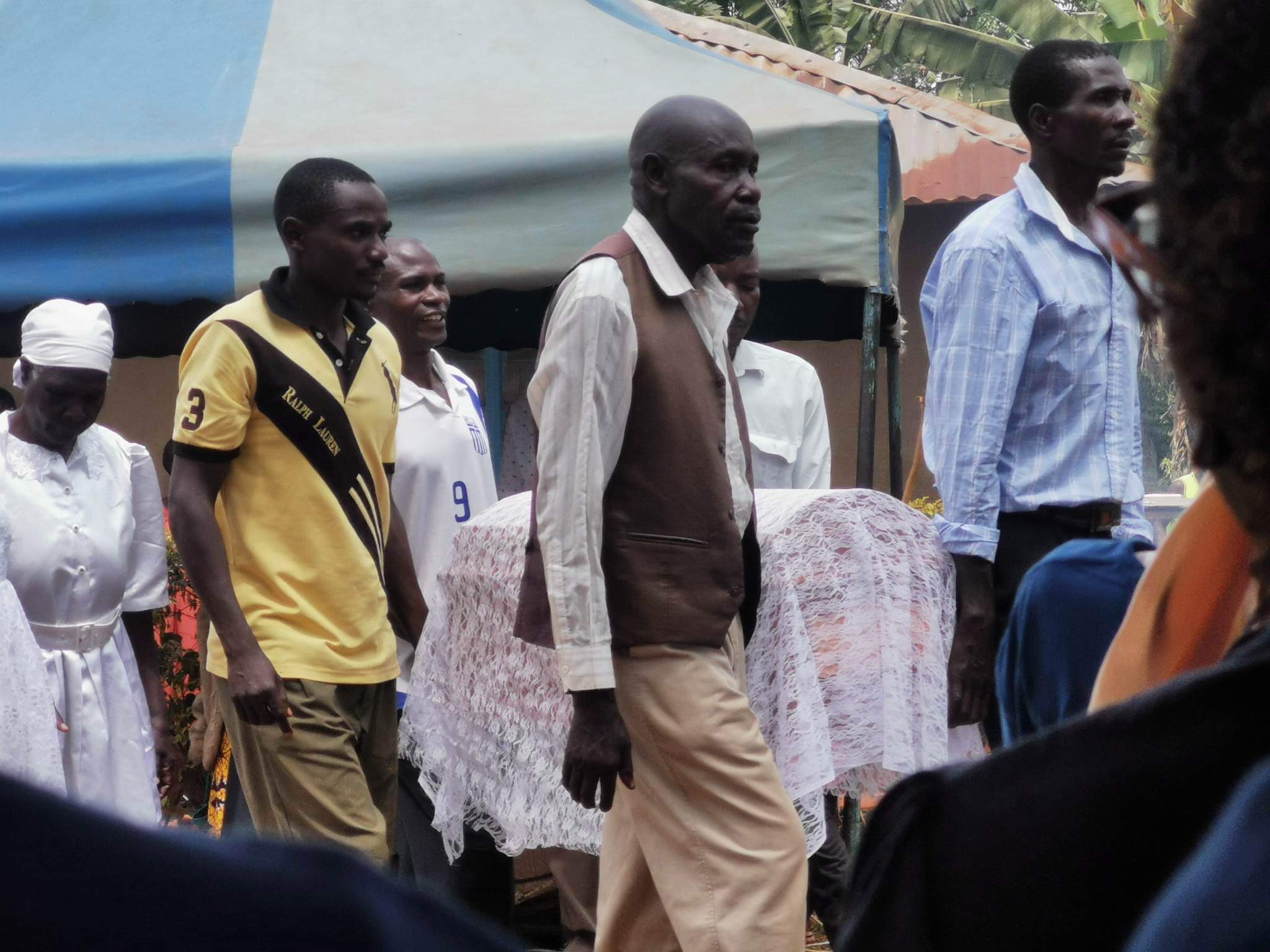 Today we had the privilege and experience to attend the funeral of Aggrey’s granddaughter. As we walked the path towards the home where the funeral, we were welcomed by the sound of a drum and singing. There were tents set up, chairs in place and an area to view the deceased and pay respects to the family. There were about 150 people present. When we arrived and over 200 people by the time the service was complete. People attended as their schedules allowed.