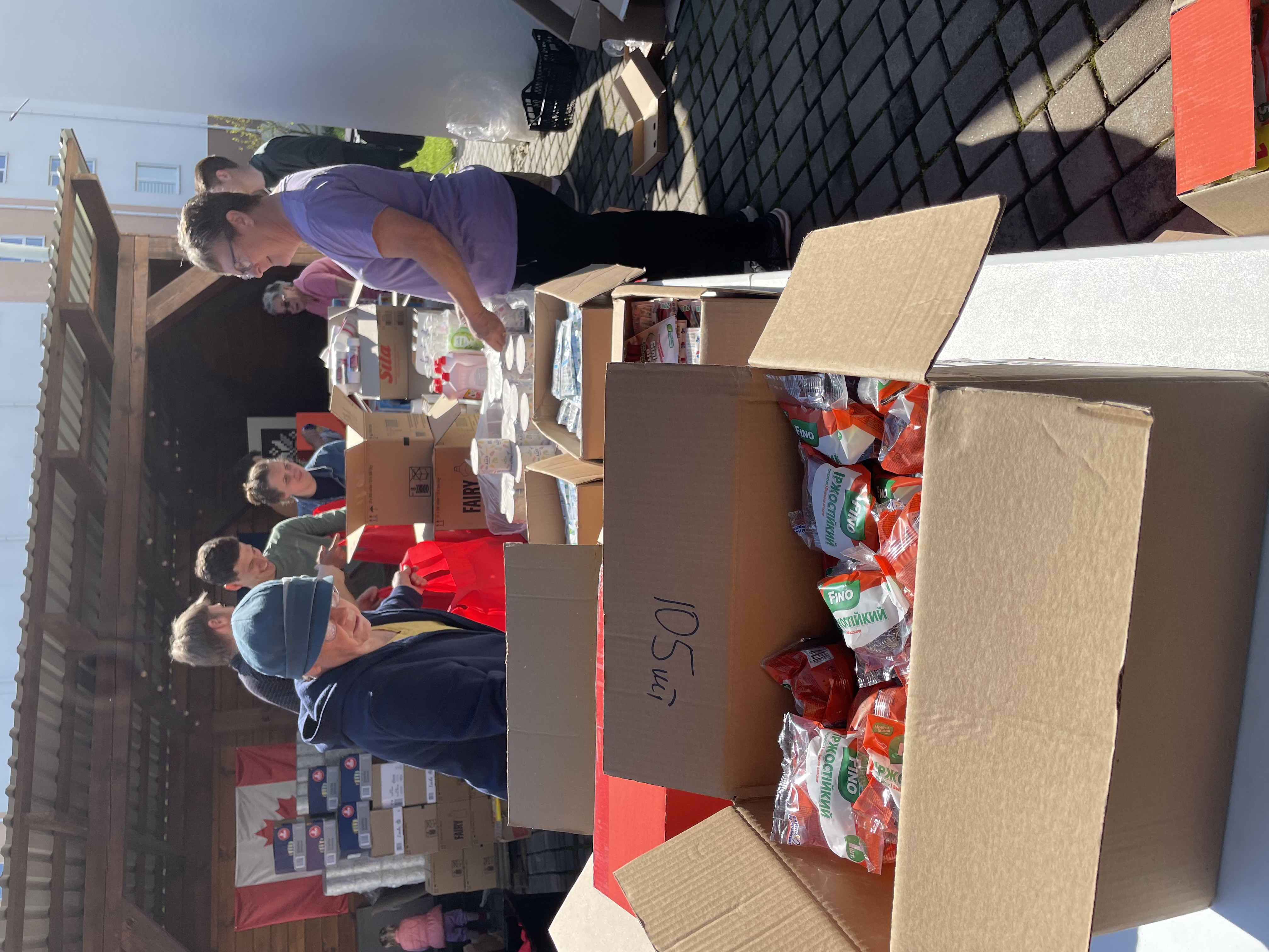 A large portion of the day was spent today compiling food and hygiene hampers. Between the two countries/one team we had an efficient assembly line. We put together 500 hampers today. The unique feature of the food hampers was that it contained all the ingredients to make paska (easter bread), which the Ukrainian orthodox church will celebrate Easter on Sunday, May 5th.