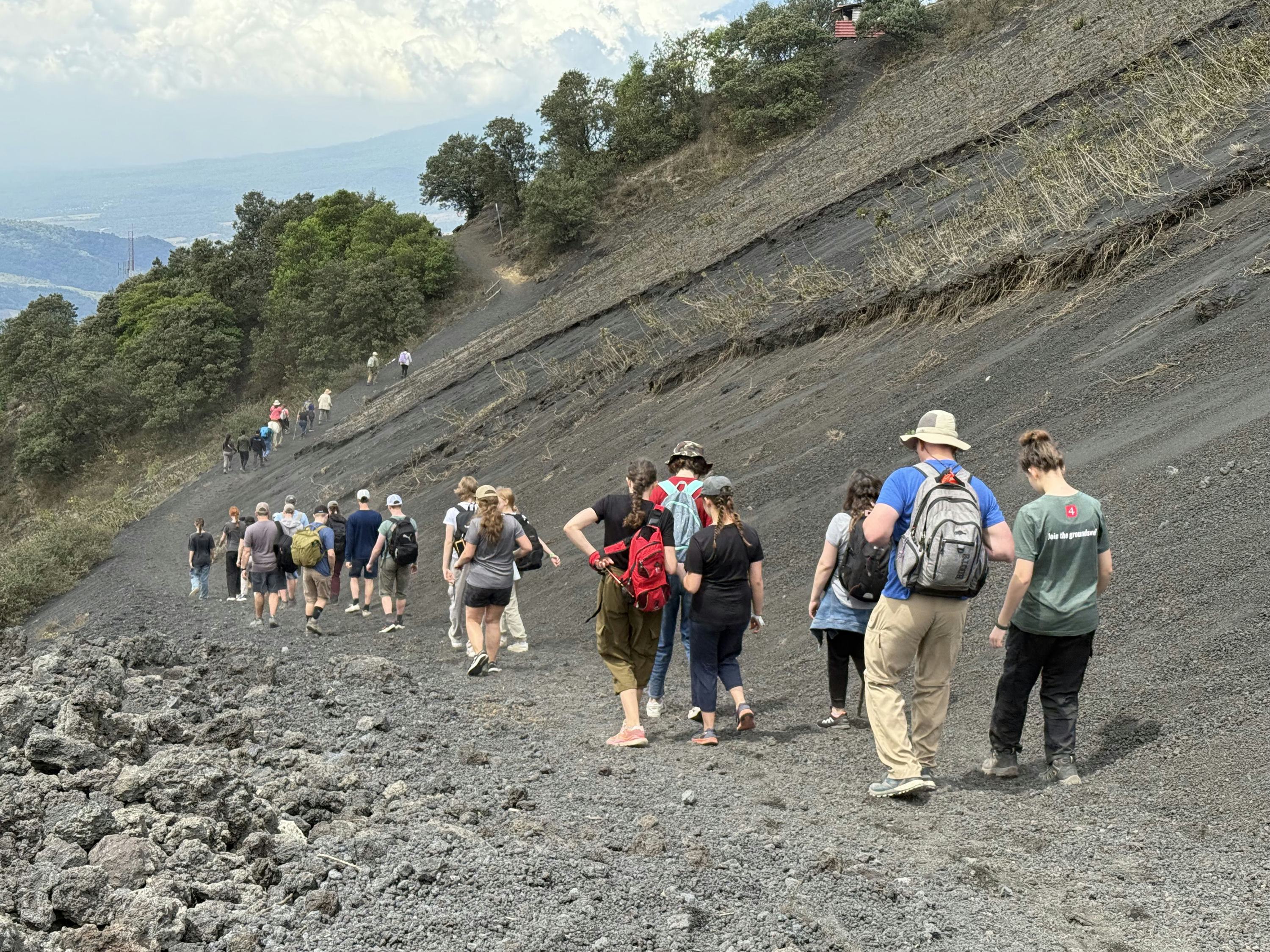 It was so much fun to watch the team laughing and talking together as we hiked the trail, kicking ash and rolling stones along the way. After a climb of nearly 400 metres we reached a lookout that gave us a stunning view of Pacaya Volcano and sweeping views of the valley below.