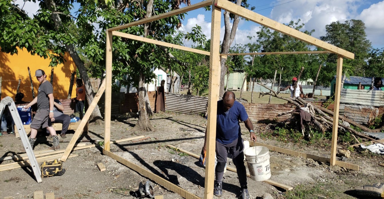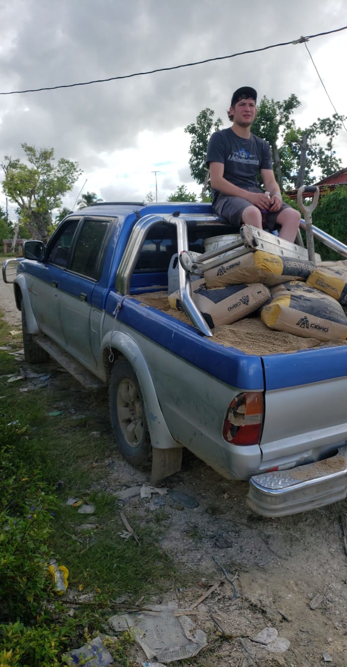After a quick stop for ice and more snacks and only after a few unfortunate whiplashes, bruised bottoms and jarred backs we arrived at Batey Vasca. Quickly discussing the plan for the day with Carlos, we split into groups of three. The guys headed to a nearby village where throughout the day they built the frame for a home and poured concrete for the foundation posts which meant hauling sand over the lumpy roads. Due to the lack of room in the cab, they wobbled on top of the sand pile on the back of the truck.