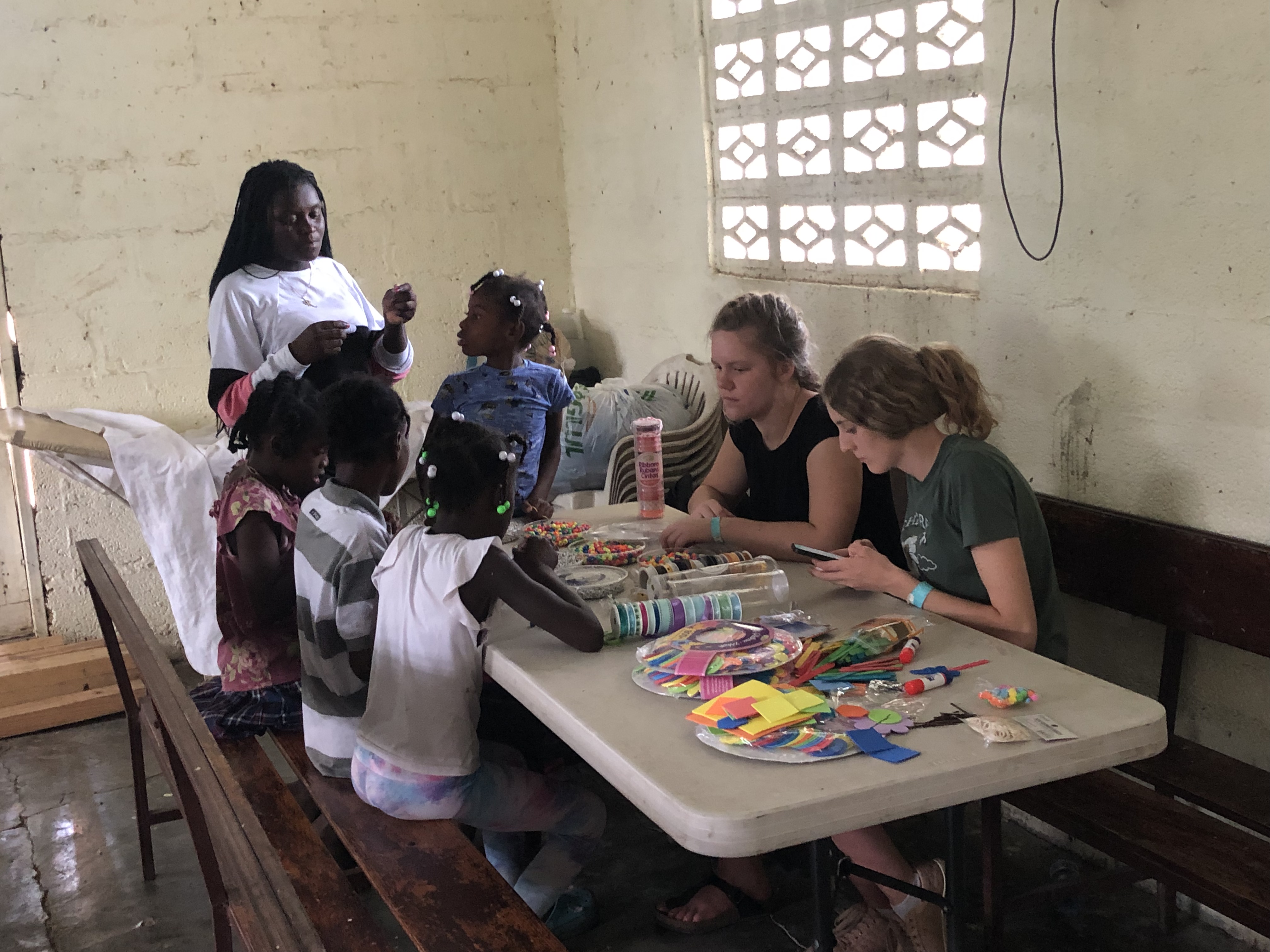 After lunch the guys left to complete their project goals for the day. Using all the fun craft supplies like glitter, beads, ribbon and colouring supplies, the girls set up craft tables and soon the children piled in. The children were absolutely thrilled with all the cool things they could make and many left a few hours later bedazzled excessively with sparkly stickers, paper crowns, jewellery and hair ribbons.