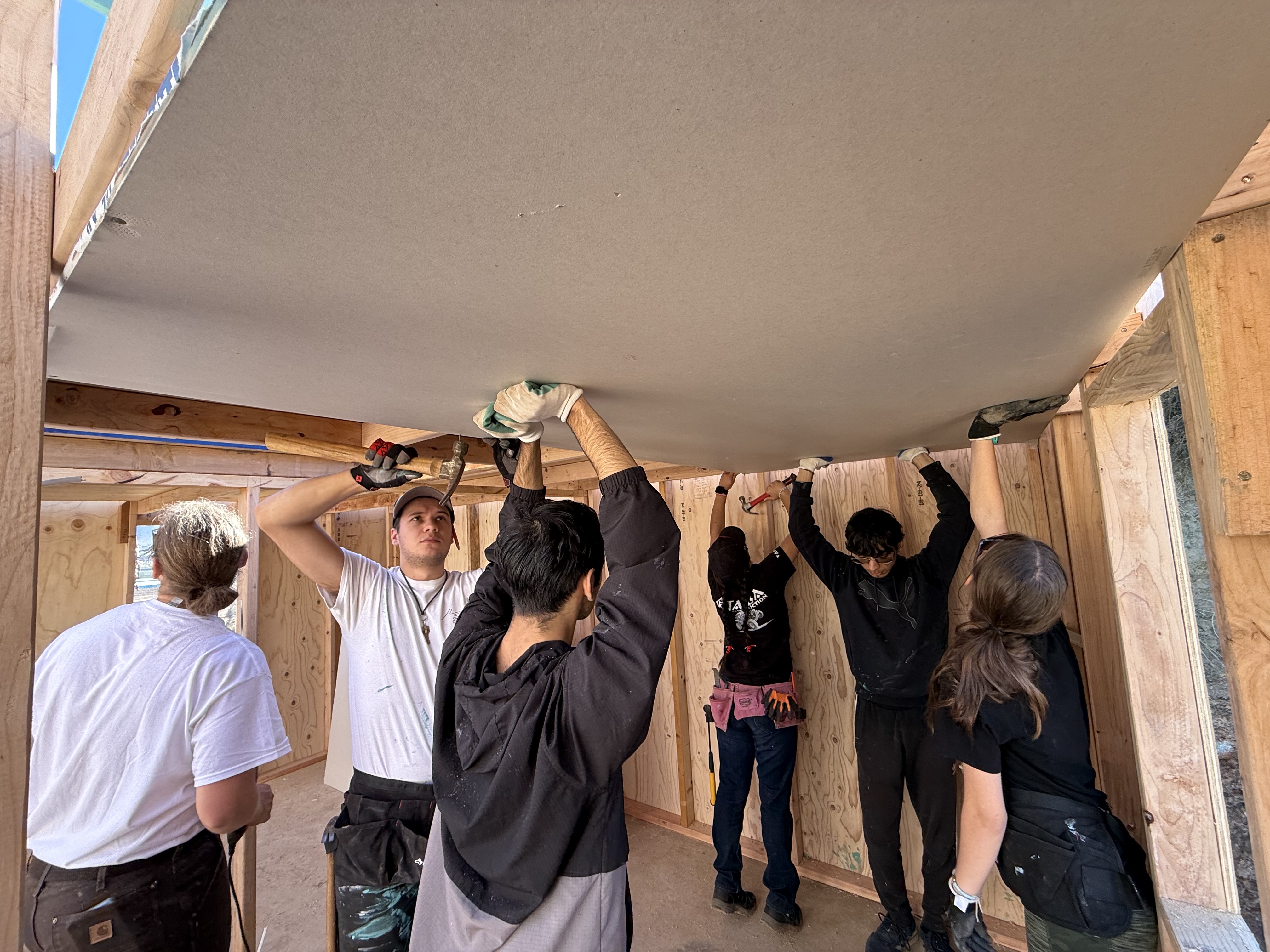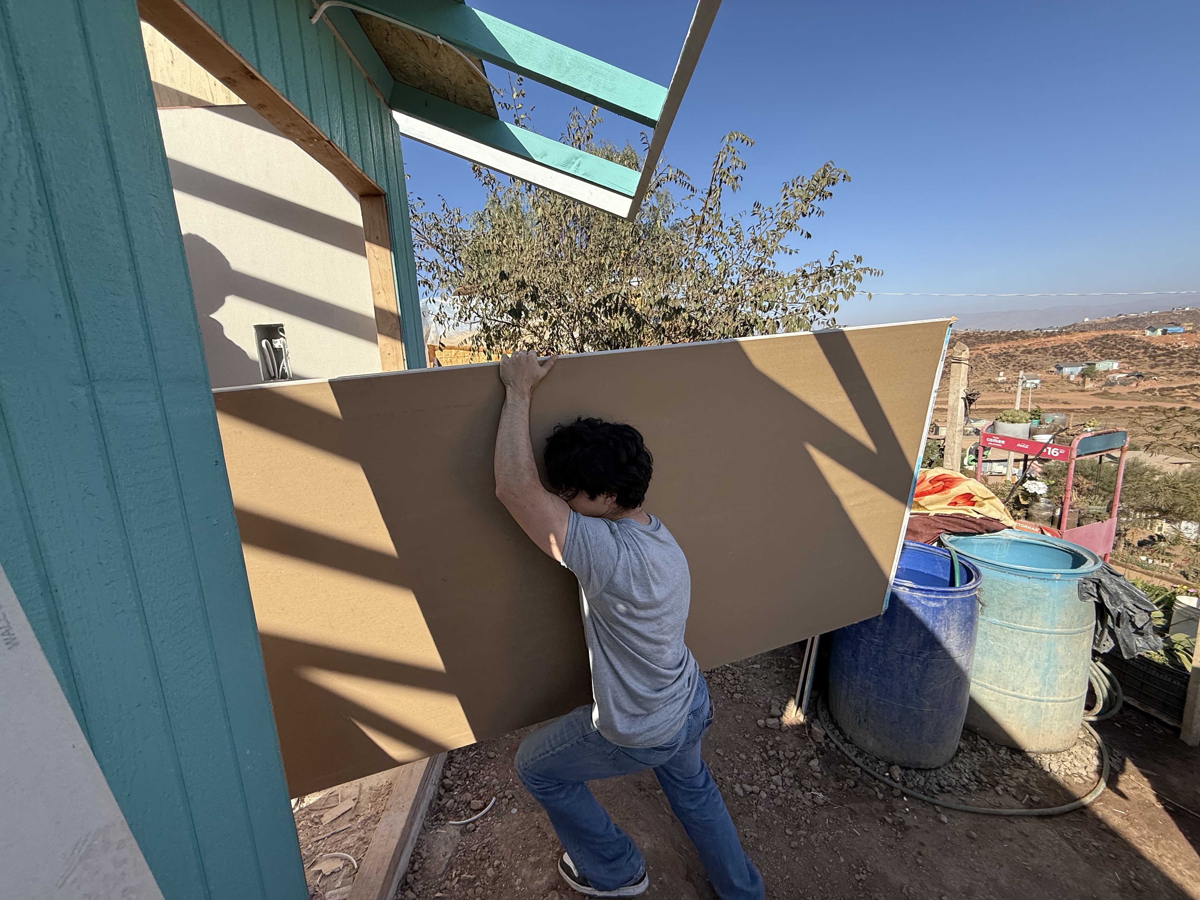 The inner walls and a roof for cover! We got the drywall in, and got started on the roof, it's really starting to look like a house now! After some construction today we also enjoyed some (please fill in the name of cabbage rolls here) sung praises led by dragosh, and ended the night with some talks, and card games.