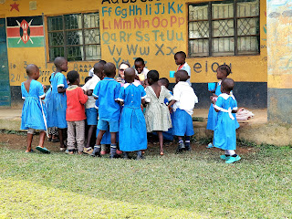 We headed off early to have fun playing with 50 preschoolers at Arise and Shine early childhood development program. The kids had seen the van several times through the week and each time we drove by they were so excited, I wondered if by the time we actually came to visit they would just turn their backs and walk away. But they didn’t! They jumped and sang and smiled. We read a story, colored, enjoyed sweeties, played games and enjoyed uji together.