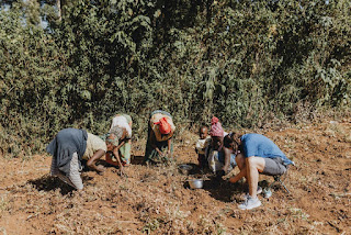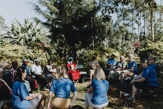 Today was a full and productive day. We started the day at 8 am joining a local ladies Bible study. It was a very special time as sisters in Christ; worshipping God while singing praises and praying together. The leader shared a devotion on Eph 4:23-24 reminding us of the importance of renewing our minds and how we need to keep our eyes on Christ. It made us look forward to heaven, where we will worship God with people from every tribe and nation. Next, we had a great experience joining a group of women harvesting a peanut type nut. In addition to their own crops these women coop farm together. It was a hot dusty job but lots of fun. Then off to the market we went. We needed to buy some produce for our women’s day on Saturday. It was very hot but a great cultural experience. In the afternoon we went to visit 6 of our widows. It was a joy for us to see Rhoda’s special needs granddaughter Yvonne doing so well. Most of the widows were doing well but mentioned that the dry weather was having a negative impact on their crops so their yields were quite a bit lower than normal. Despite the joys and trials that come their way, they express their hope in God. Every day we end our day with a time of devotion and debriefing. This is always a highlight in our day before we head off to bed to rest up for the next day.